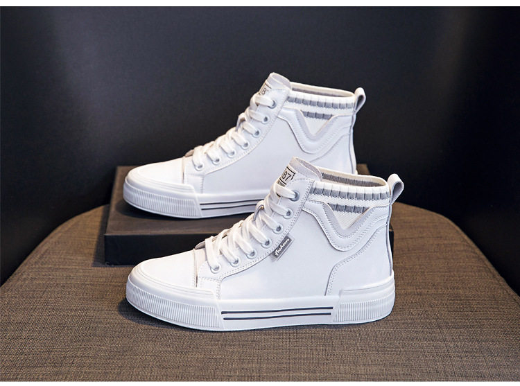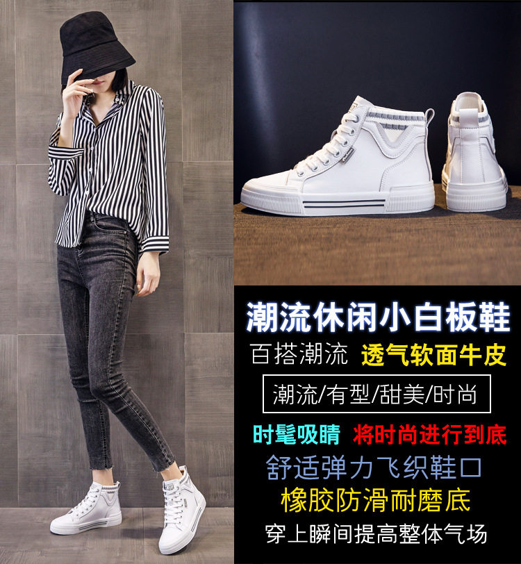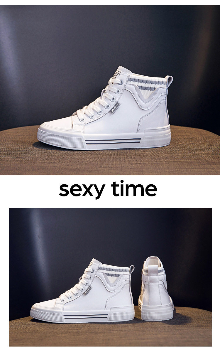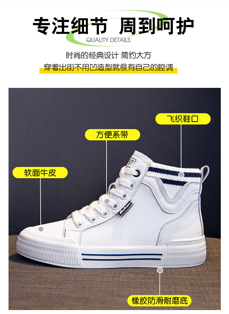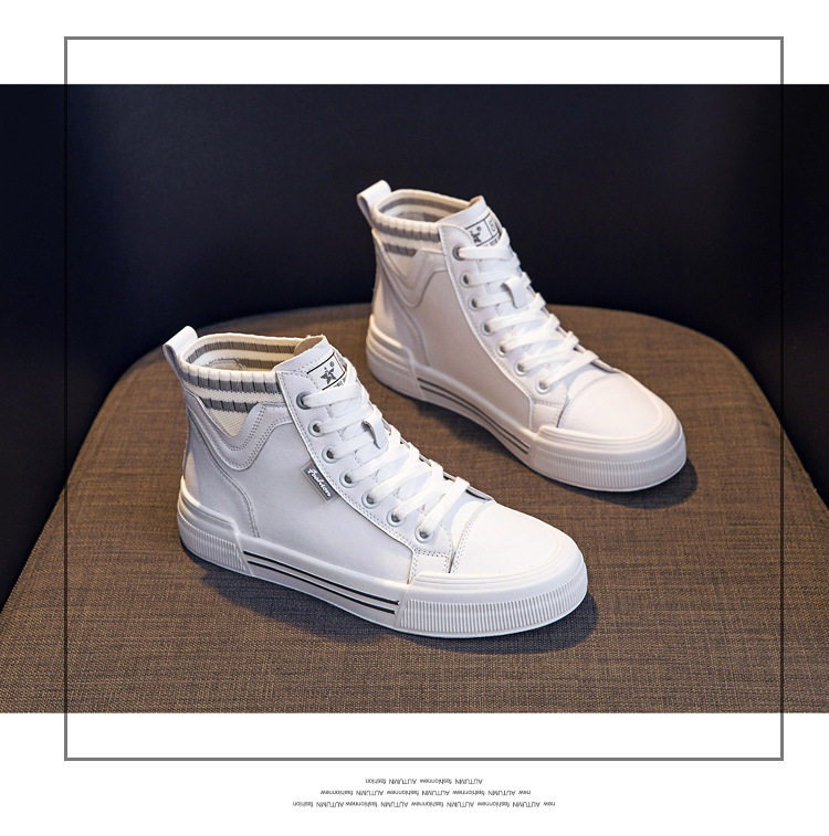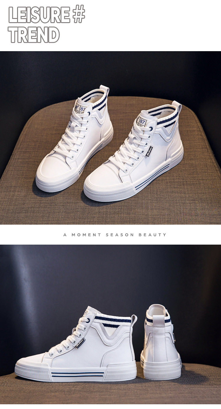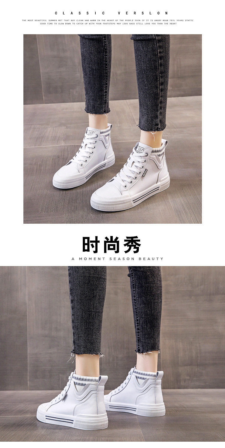 Trendy White High-Top Sneakers for Women, 2025 Autumn New Versatile Genuine Leather Sneakers, Sports and Casual Shoes, ins Trendy Single Shoes