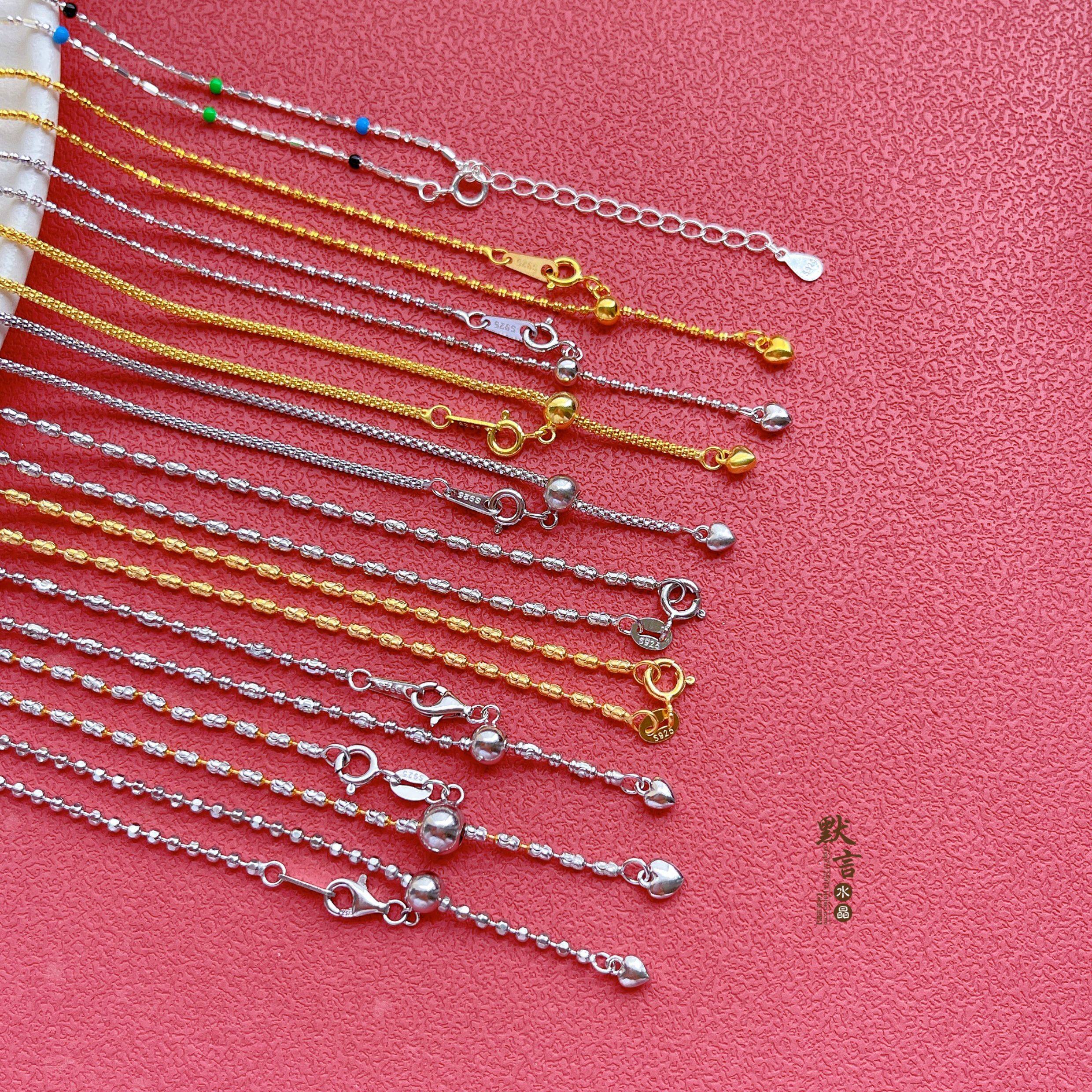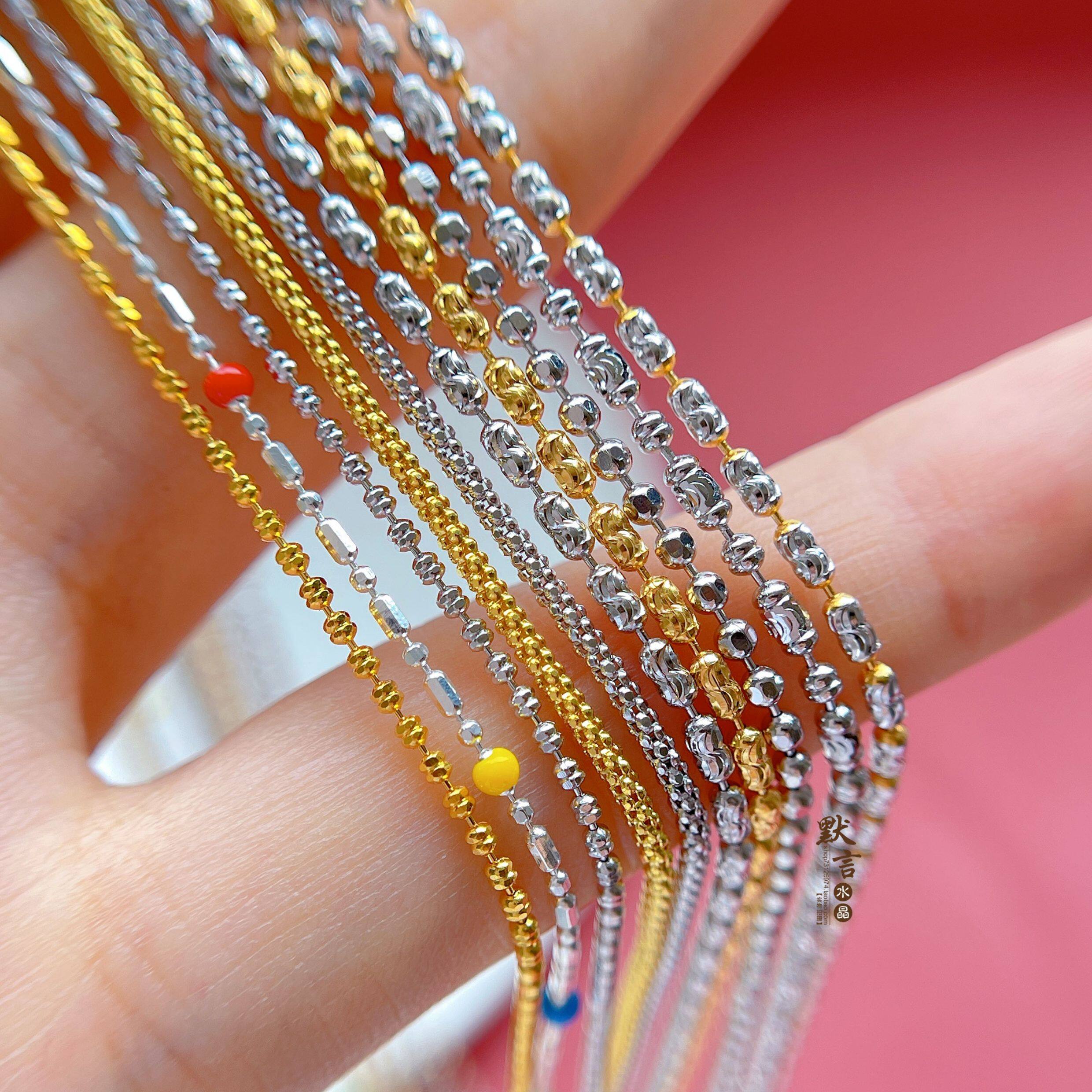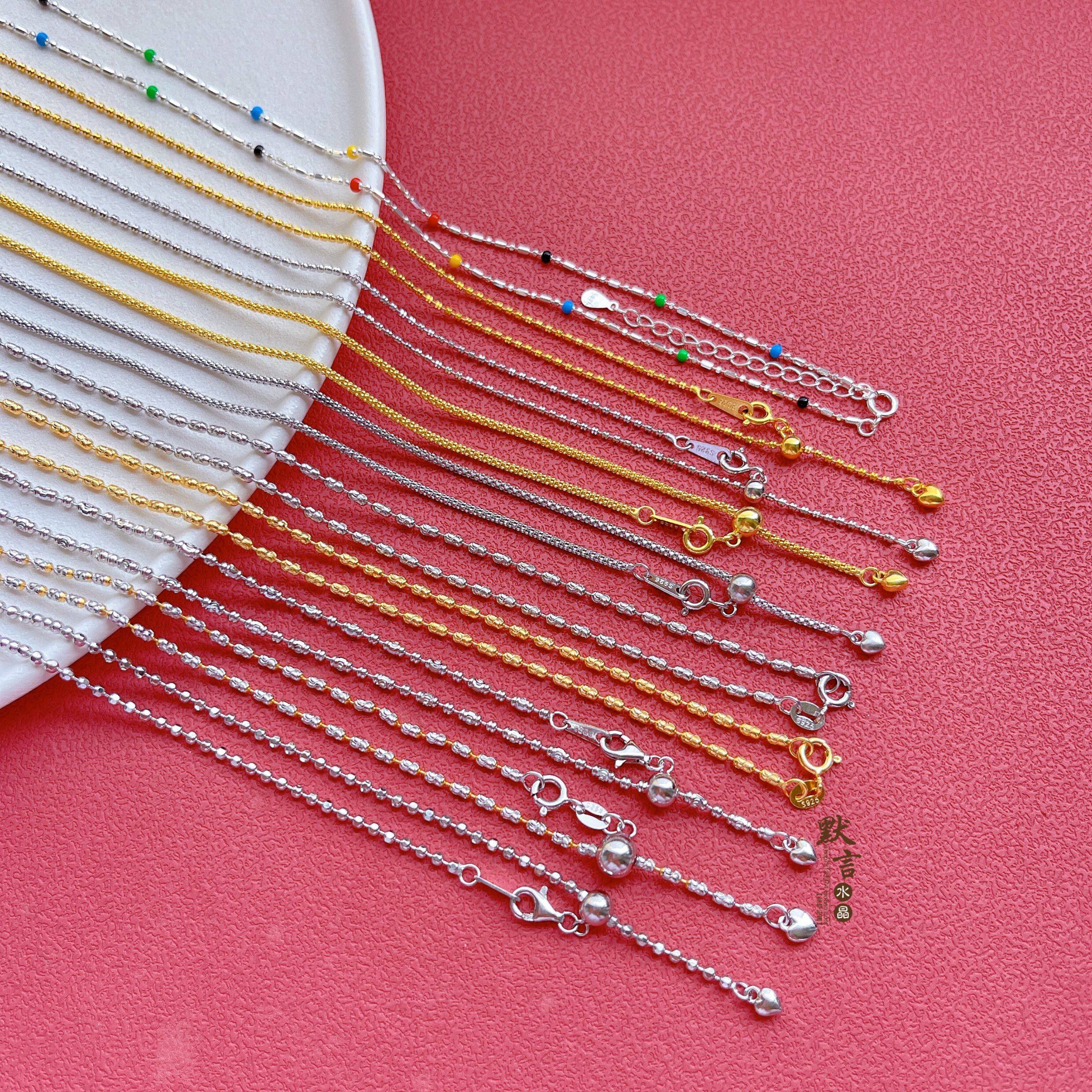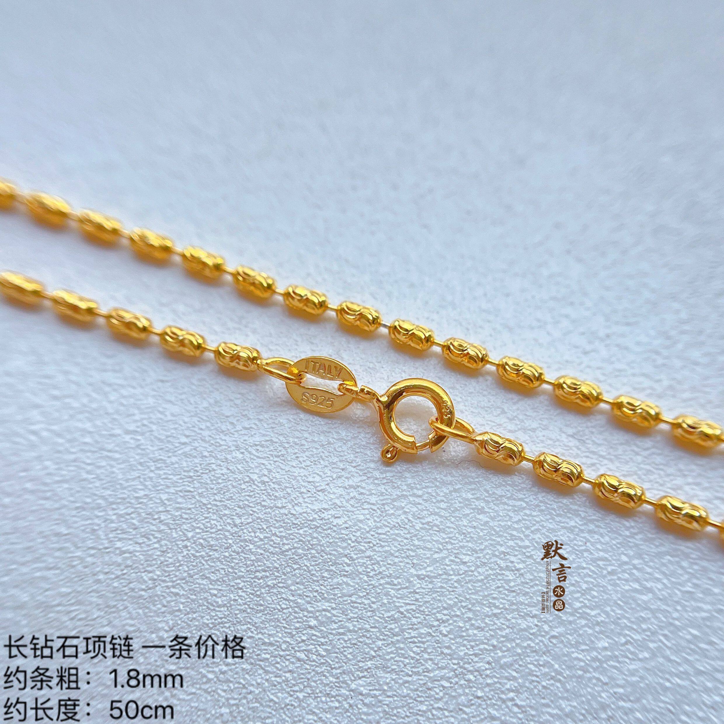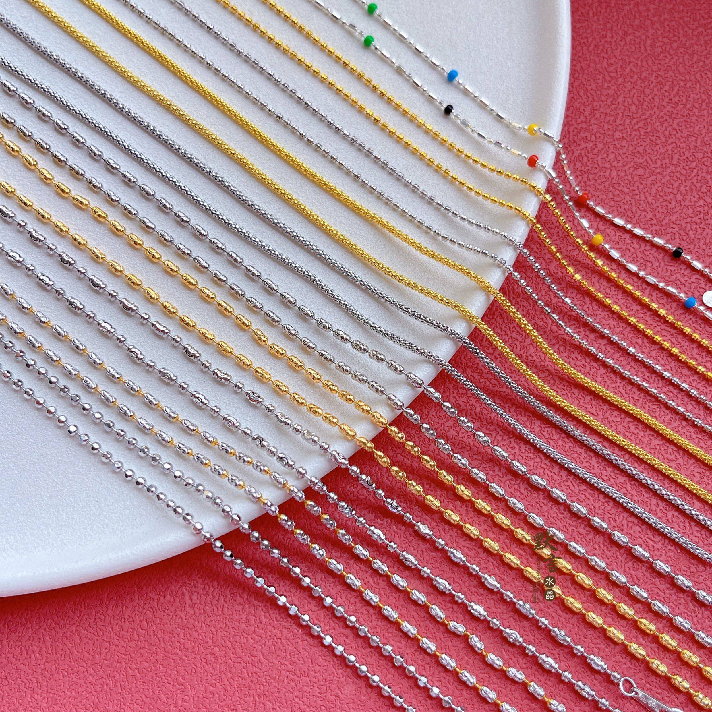 S925 Sterling Silver Heavy-Duty Sparkling Silver Diamond Chain for Women, Faceted Gold-Plated Necklace, Versatile Pendant Chain, Adjustable