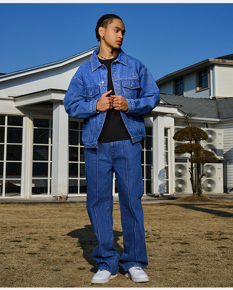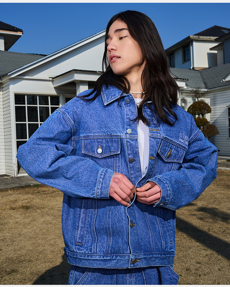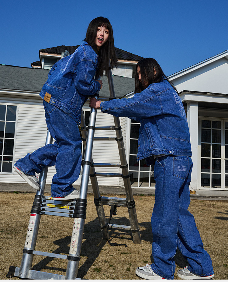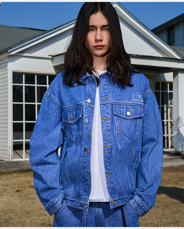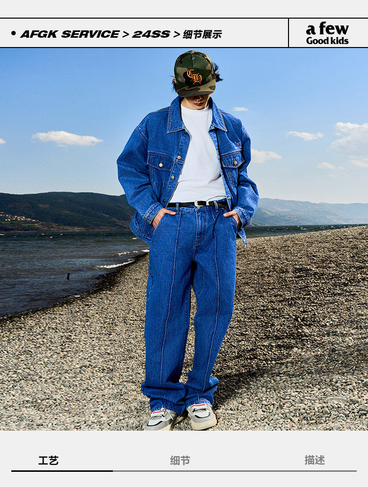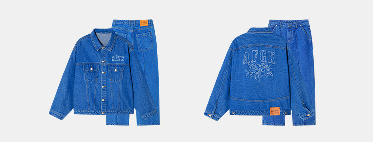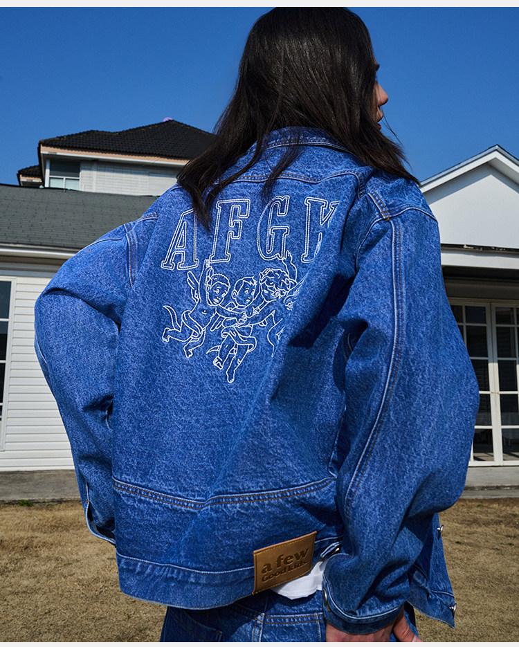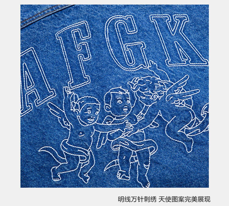 Afgk2024Ss Three Angels Topstitch Embroidery American Street Fashion Brand Spring and Autumn Lapel Casual Denim Suit for Men and Women