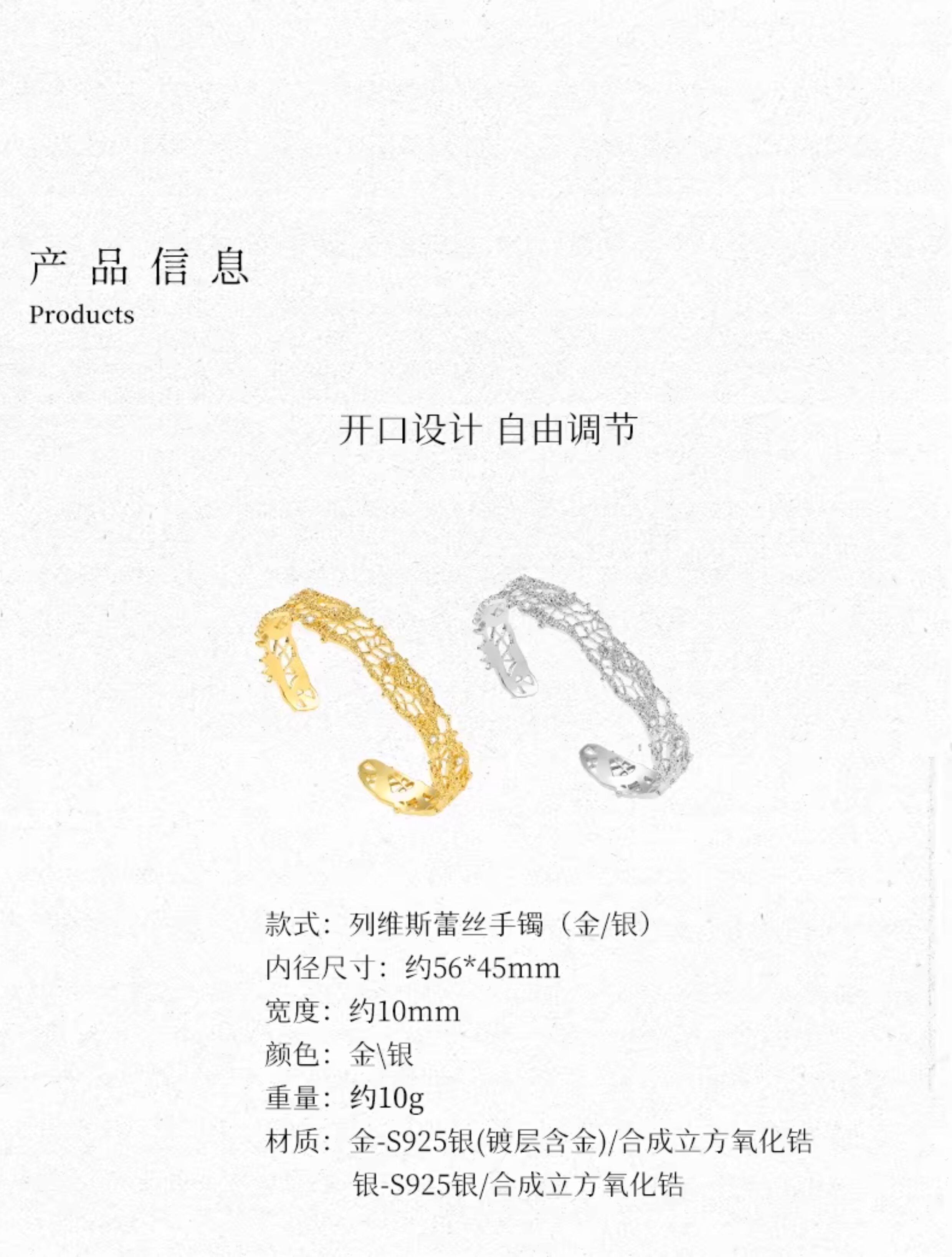 Ooak Levi's Lace Bracelet, Light Luxury Niche Design Silver Jewelry Gift, 925 Silver Bracelet, High-End Feel