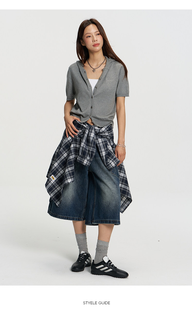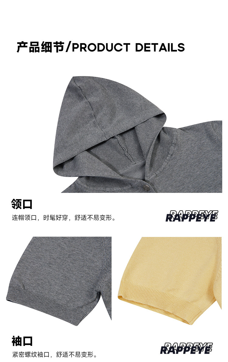 Rappeye Retro Design, Preppy Style, Loose Pullover Casual Top, Short-Sleeved Hooded Knitwear for Women