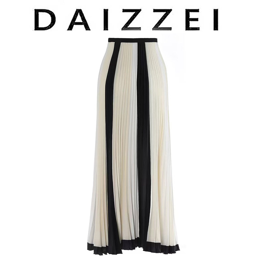 Daizzei~ Draped, Contrasting Color, Elegant Pleated Skirt for Women, New Spring/Summer High-Waisted Slimming A-Line Midi Skirt