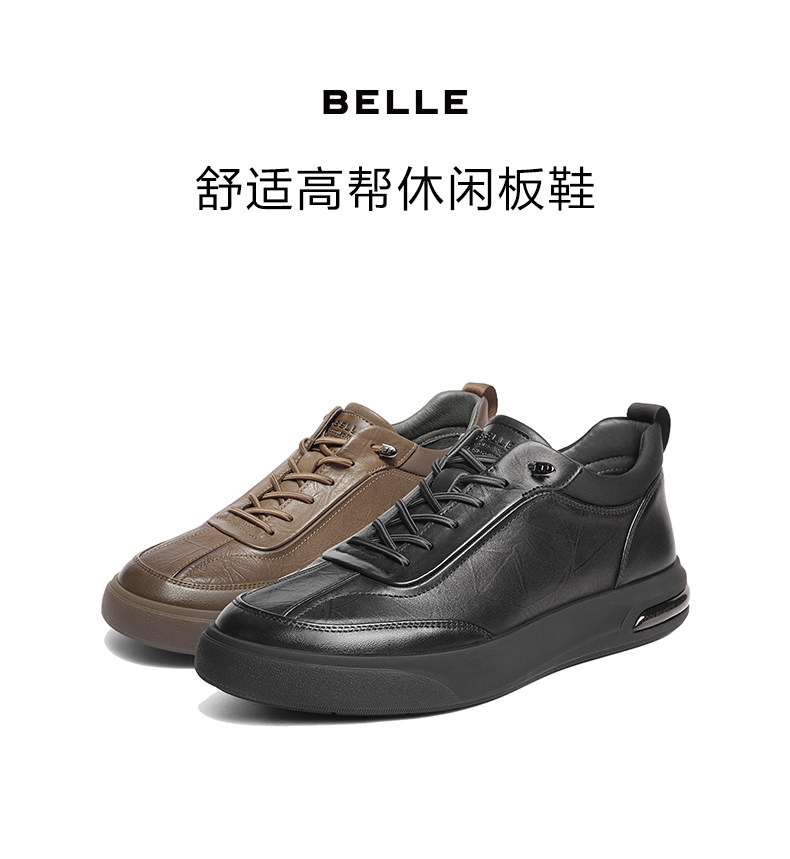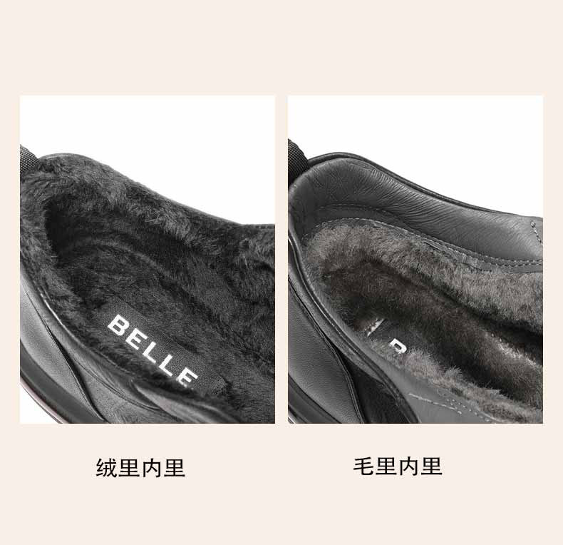 Belle Men's High-Top Black Sneakers Cotton Shoes Men's Winter Genuine Leather Thick-Soled Casual Shoes with Fleece 8Wb01Dm5