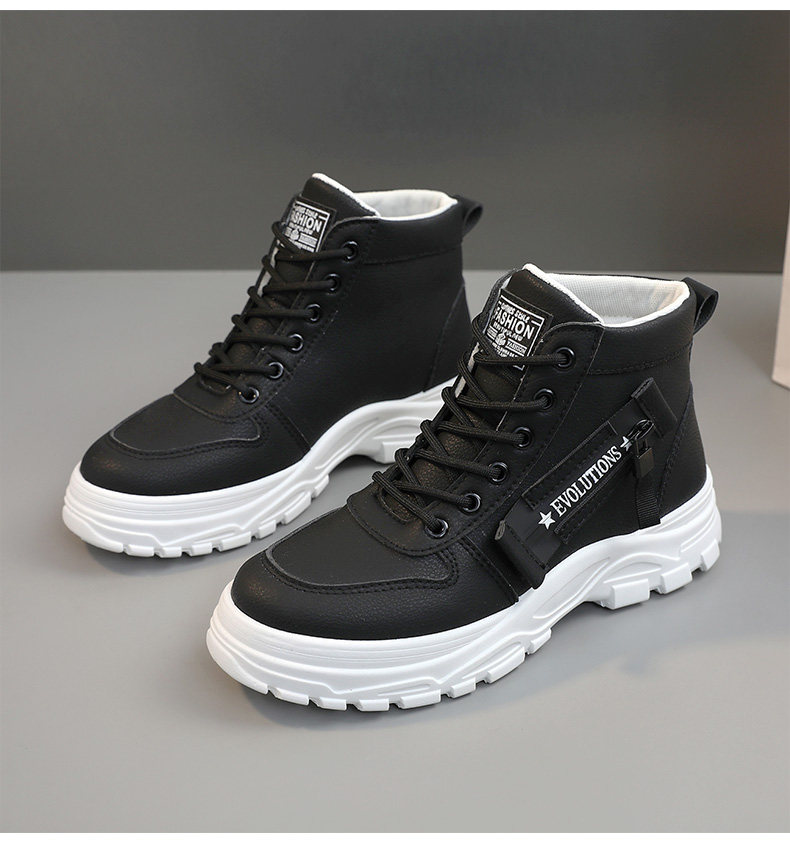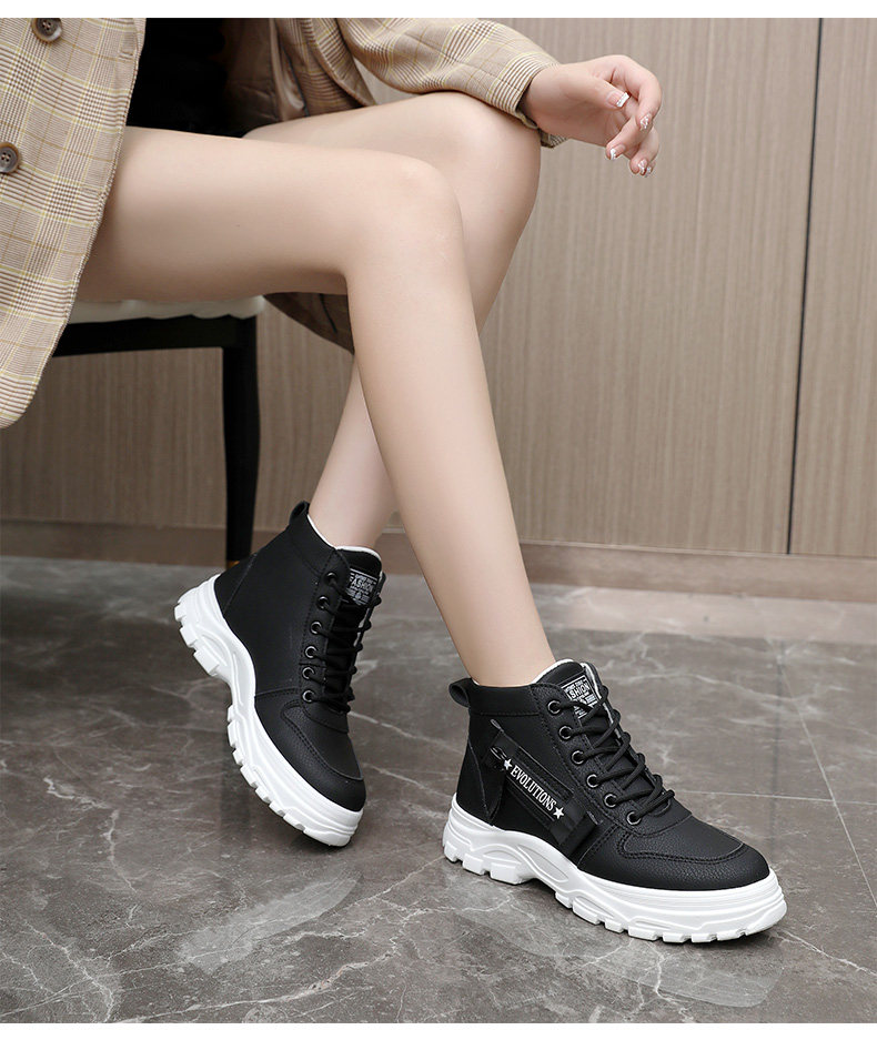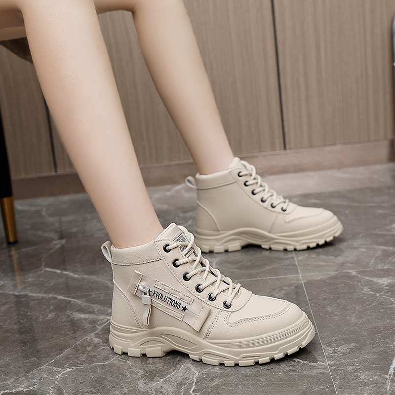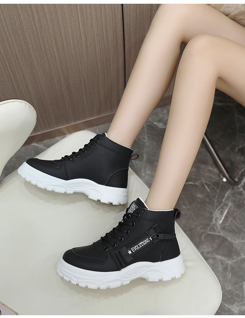 35-44 Large Size Martin Boots for Women, White High-Top Shoes, Popular Autumn and Winter Style, 4cm Height Increase, Suitable for Skirts, Non-Slip Sneakers, Short Boots