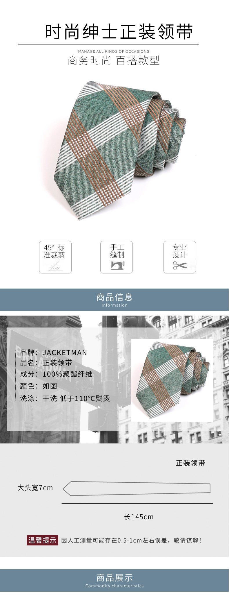 Jacketman Tie Men's Formal Business Korean Style Narrow Dark Green Plaid 7cm Fashionable and Unique British Trendy Style