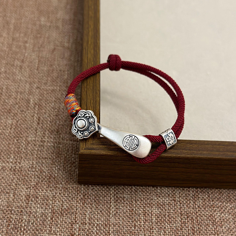 Sea Rover Pure Silver Ruyi Handmade Red String Bracelet for Women, Sterling Silver Braided Couple's Bracelet for Good Luck in the Year of Birth, Girlfriend's Bracelet