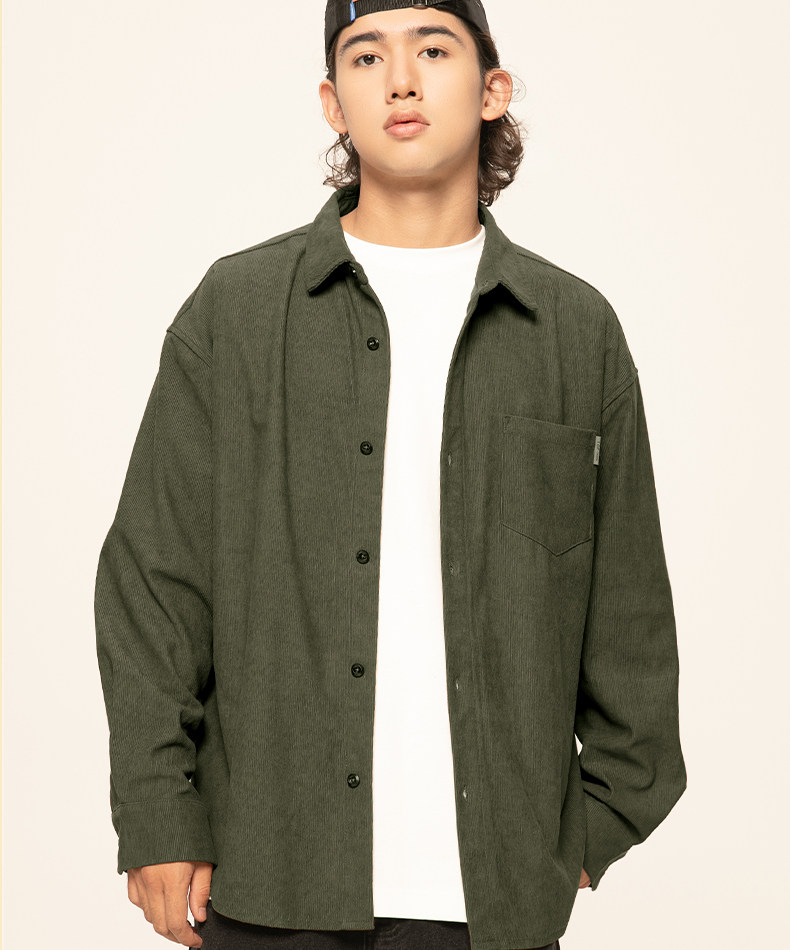Jeanswest American-Style Shirt for Men, Spring Casual Corduroy Long-Sleeve Shirt, Men's Green Retro Lapel Jacket F