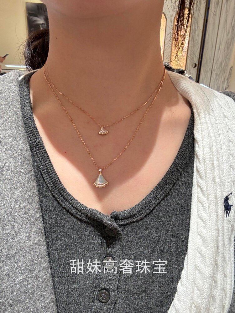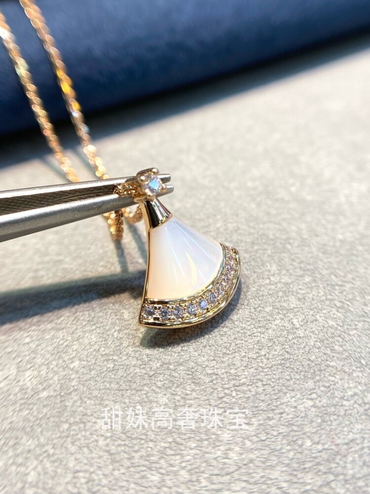 High-End White Mother-Of-Pearl Small Fan Skirt Necklace for Women, V-Shaped Gold-Plated 18K Gold Clavicle Chain, Non-Fading Neck Chain Gift