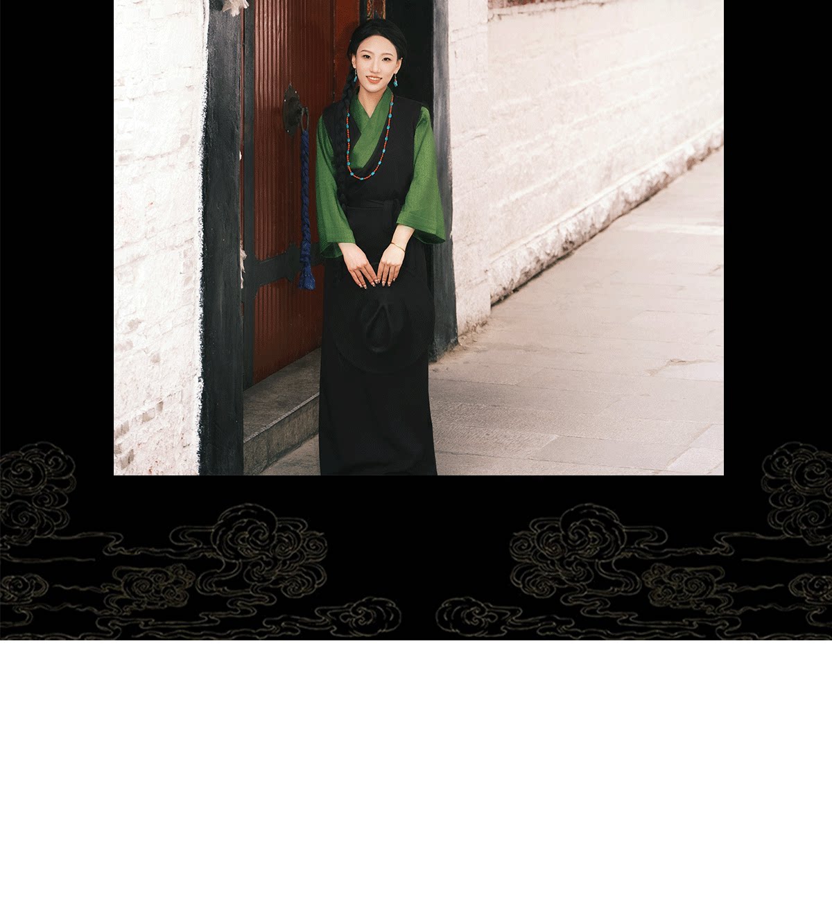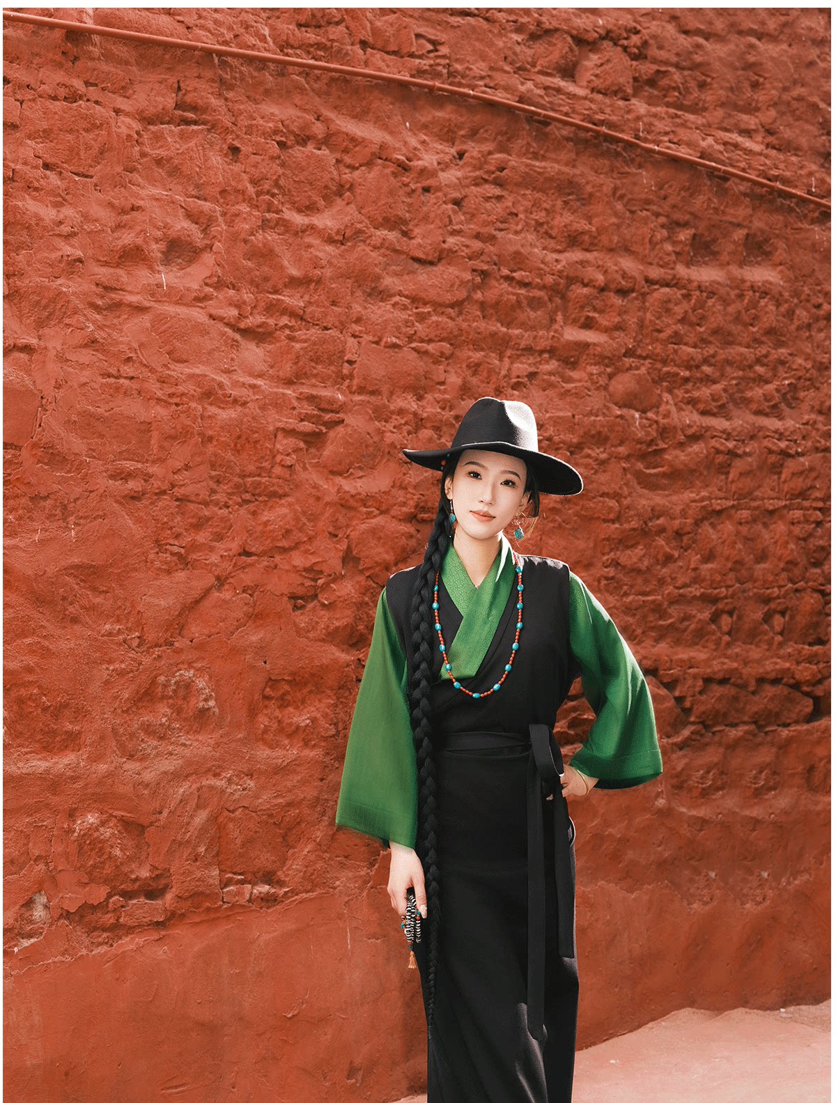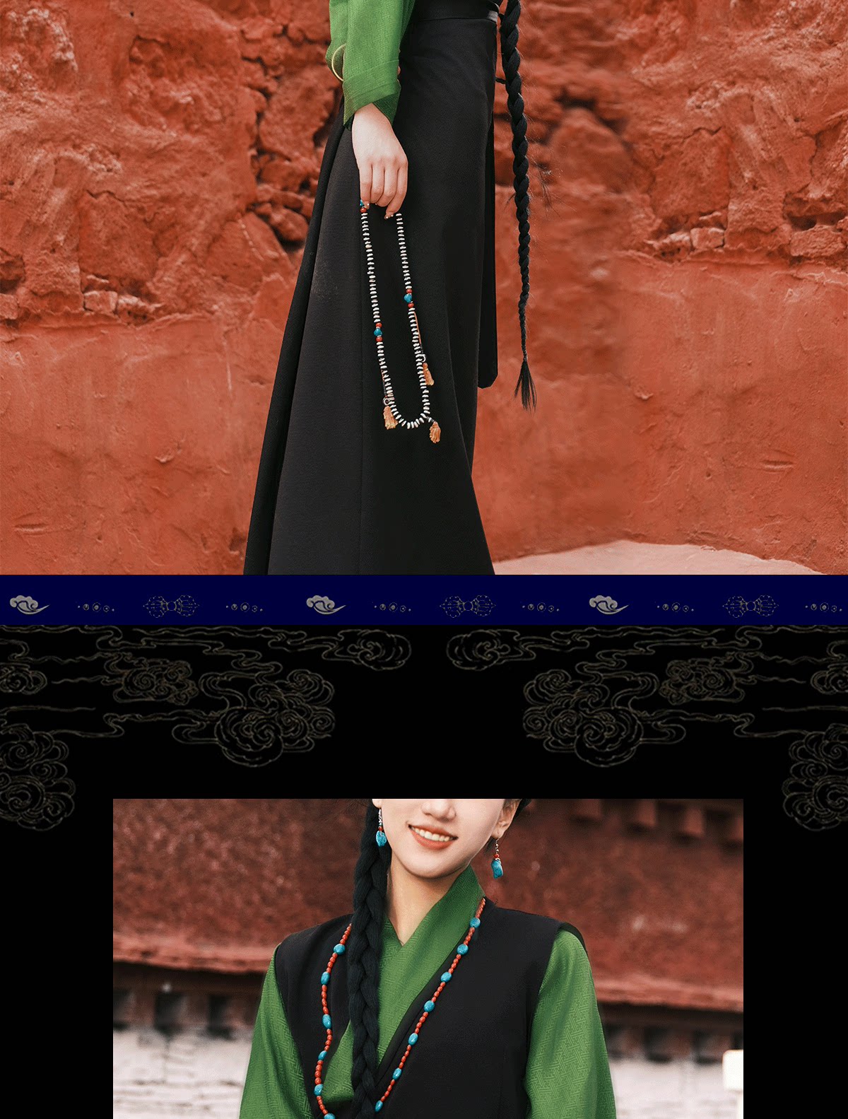 Maguba'Highland Barley' Retro Green Elegant Black Lhasa Tibetan Dress for Women, Classic and Elegant Hanfu Dress