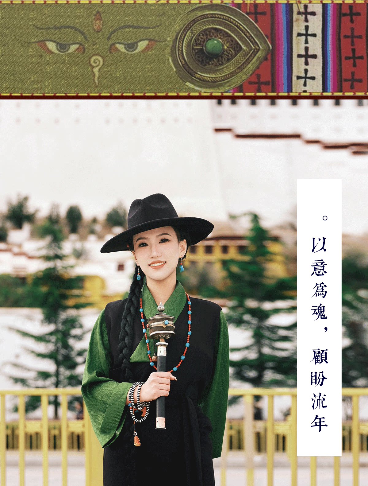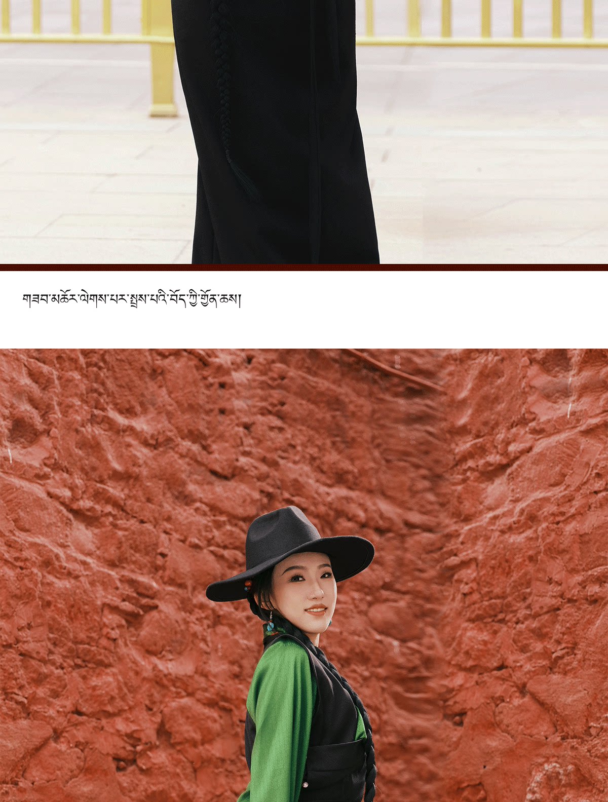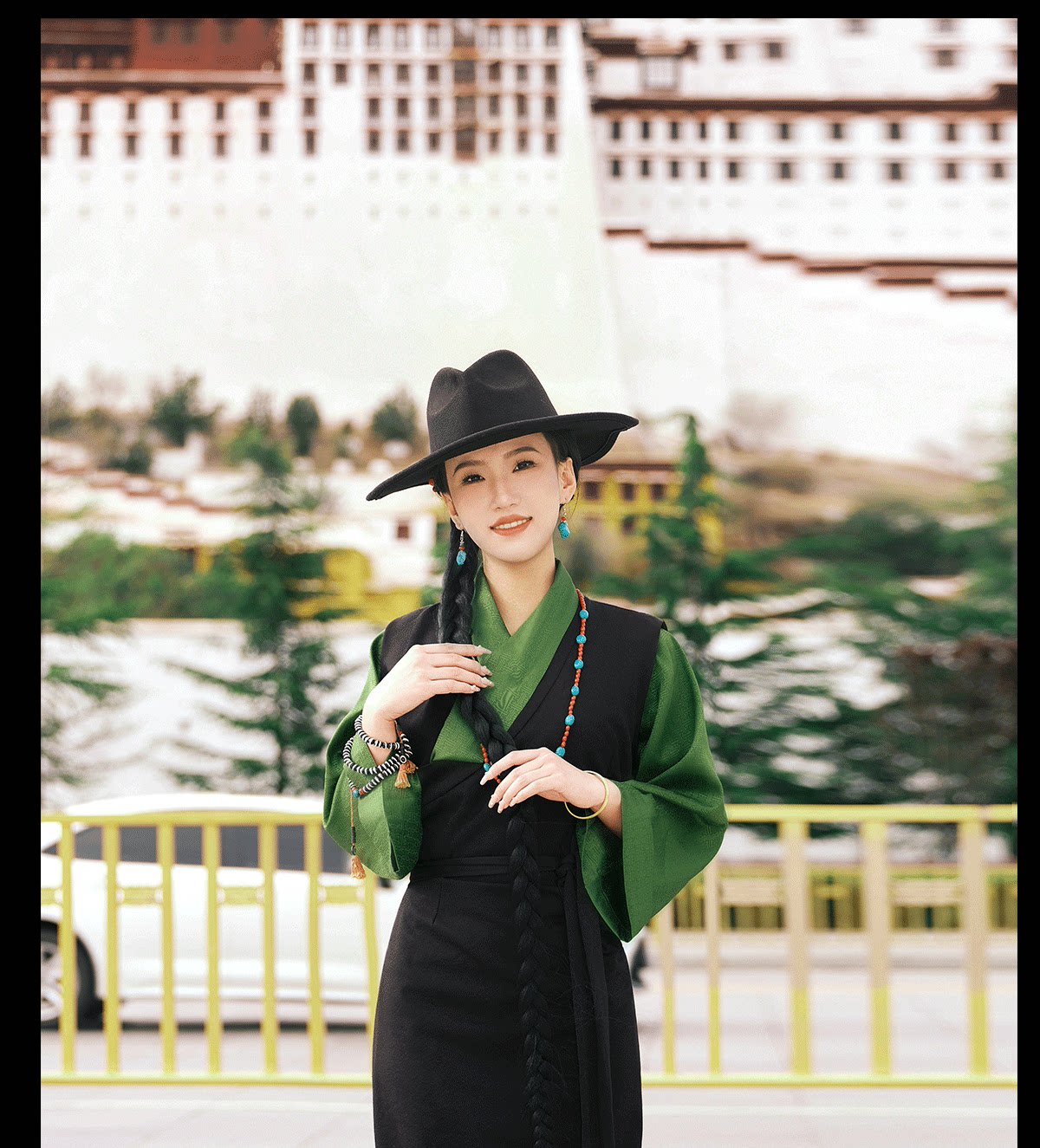 Maguba'Highland Barley' Retro Green Elegant Black Lhasa Tibetan Dress for Women, Classic and Elegant Hanfu Dress
