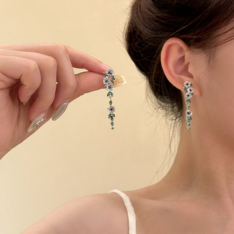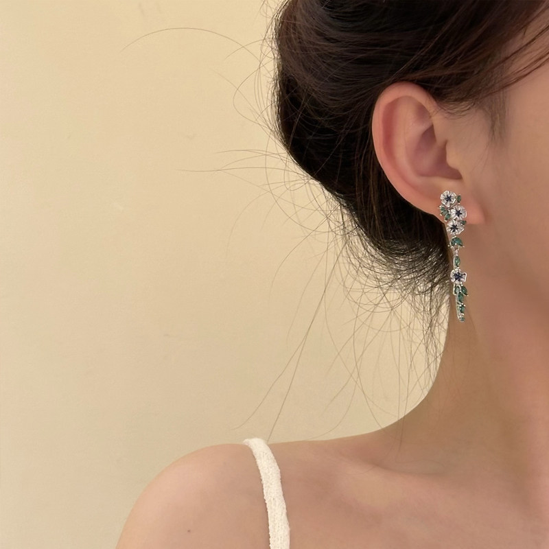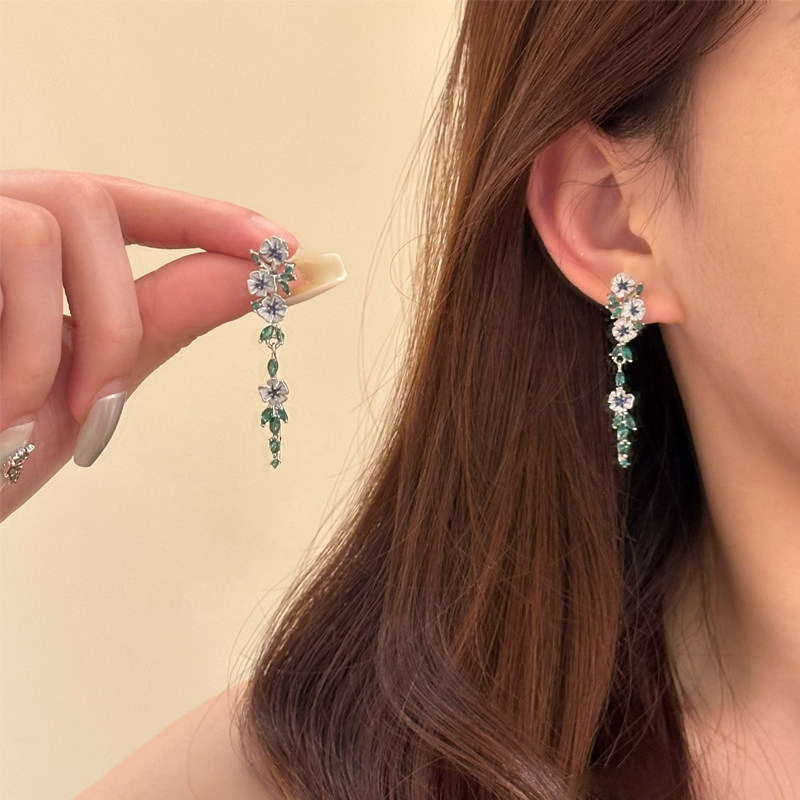 Monet's Garden~ Oil Painting Style Blue Flower Tassel Earrings, High-End and Elegant Holiday Earrings for Women, Spring and Summer Earrings