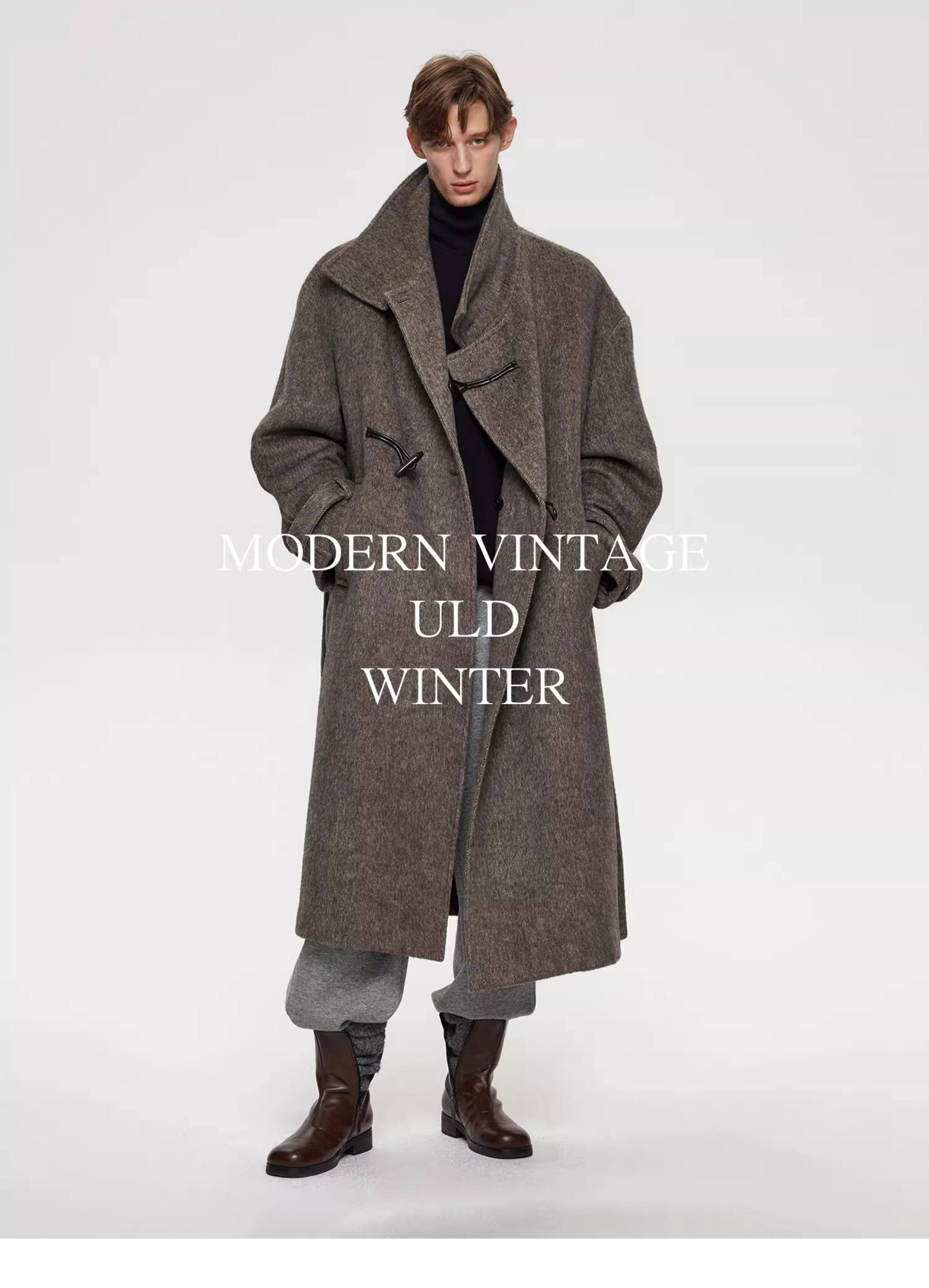 Uld/90S Vintage Modern Style Silk Wool Textured Stand Collar Toggle Button Handmade Coat