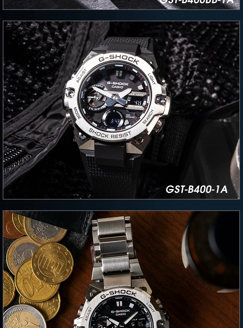 Casio Steel Ocean Heart G-Shock Green Water Ghost Watch Men's Gst400B100 Poseidon Non-Mechanical Watch