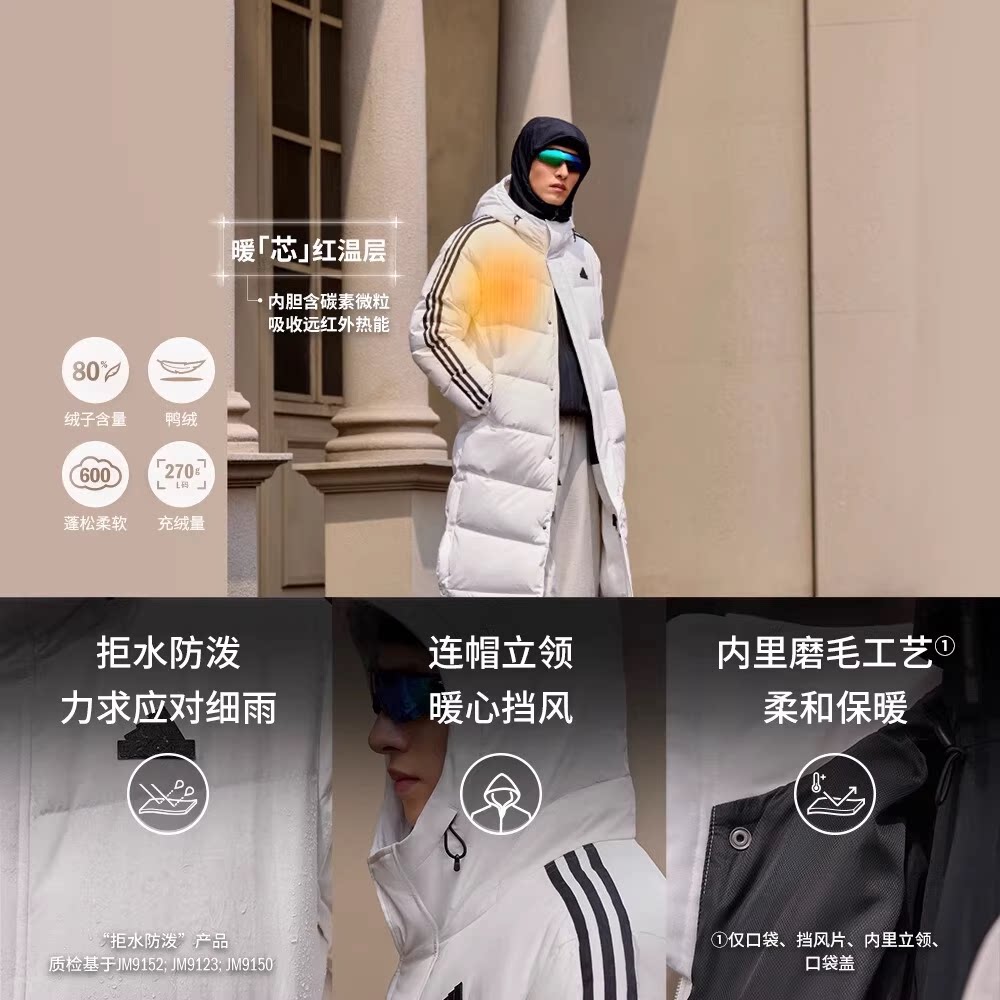 Adidas down Jacket Long Over-The-Knee Warm Hooded Jacket for Men and Women Winter 2024 New Model Jm9122 9152