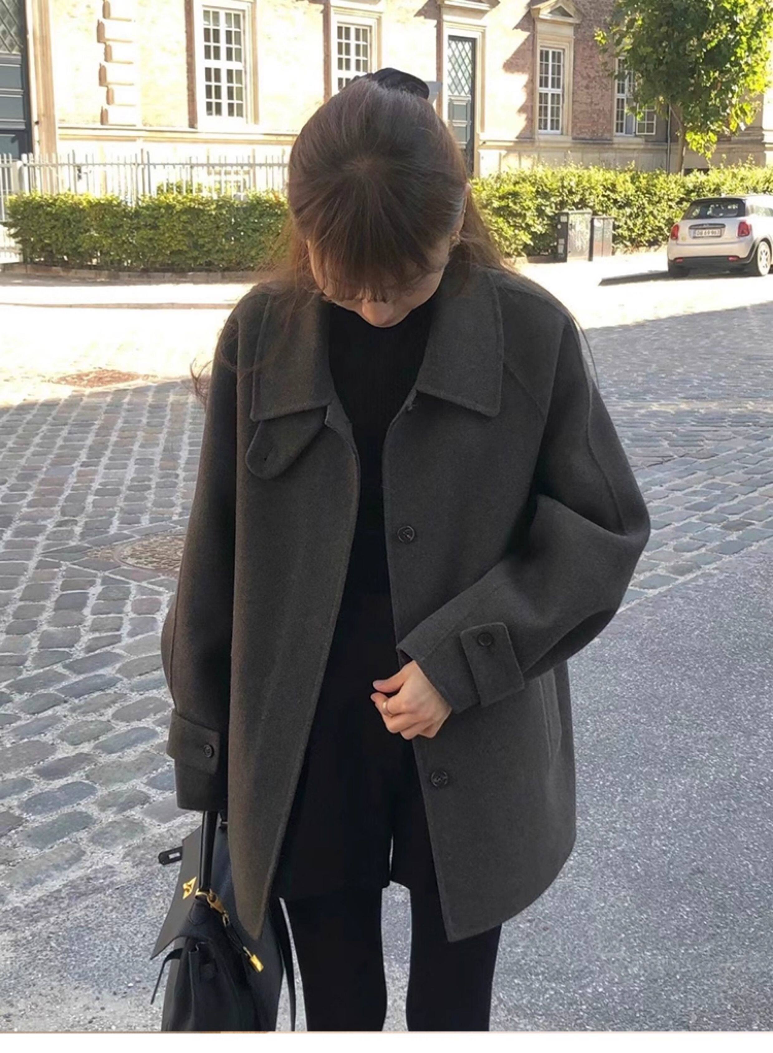South Korea Dongdaemun 2025 Autumn/Winter Hand-Stitched Double-Sided Fleece Coat for Women, Elegant and Versatile, Loose Wool Coat for Petite Figures