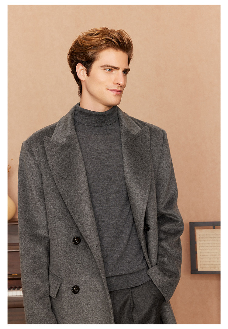 主推的10%嵿级羊绒大衣系列,面料采自YI线大衣的合作供应商,