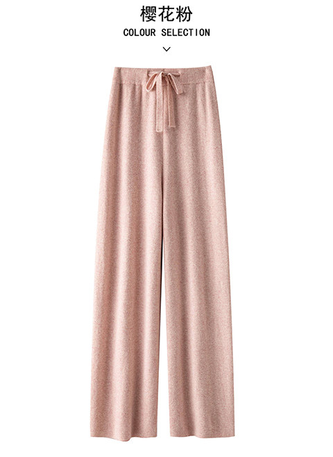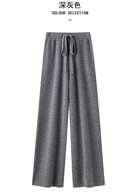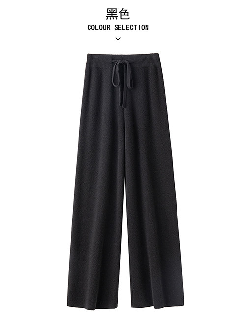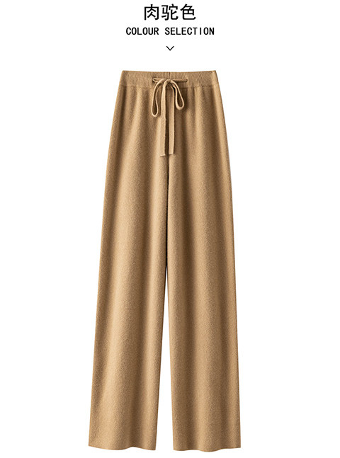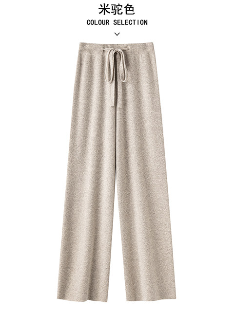 100% Australian Pure Wool Wide-Leg Pants for Women, Autumn and Winter, Extra-Long Straight-Leg Pants with Drapey Cashmere Knit, Casual Floor-Length Pants