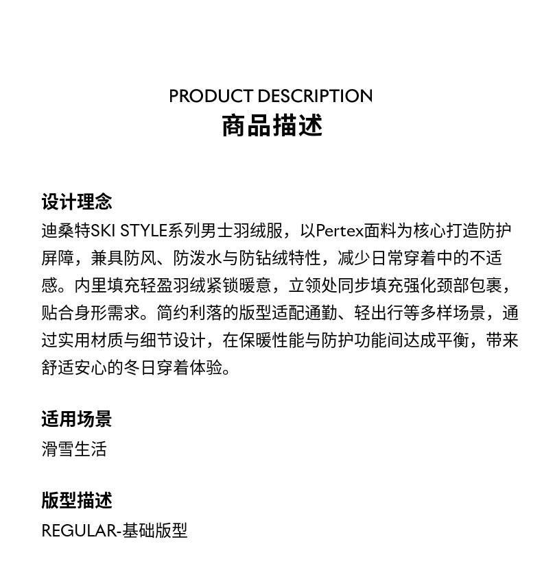Descente Ski Style Pertex Windproof and Water-Resistant Men's Lightweight Ribbed down Jacket