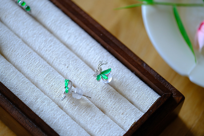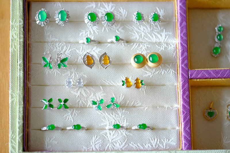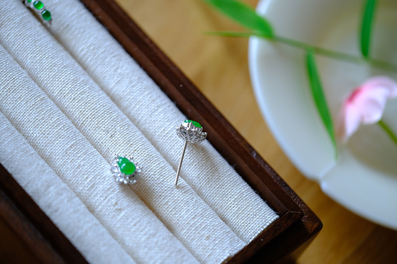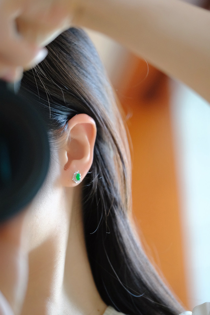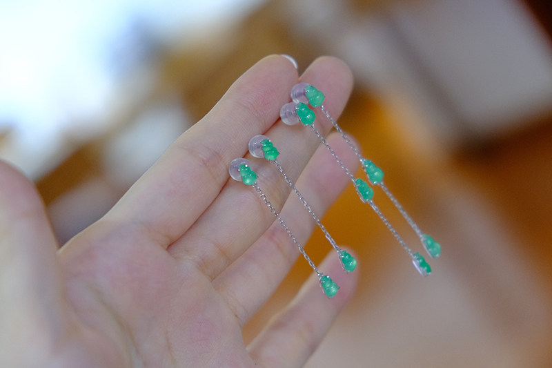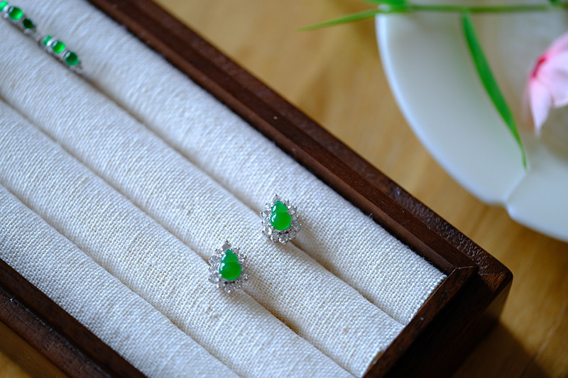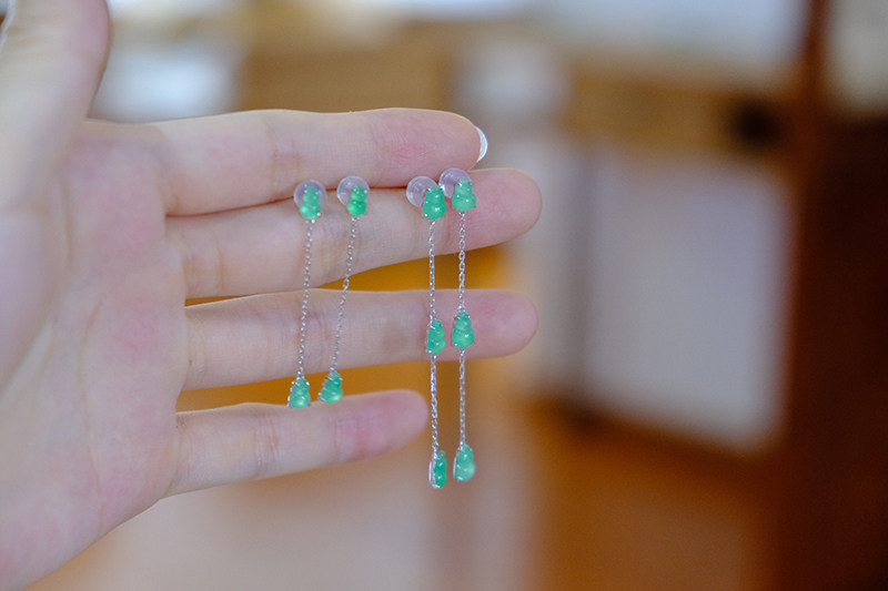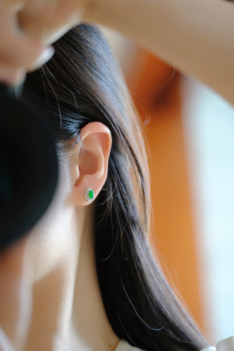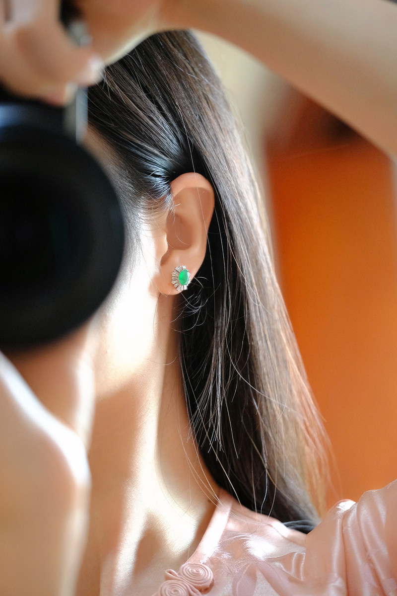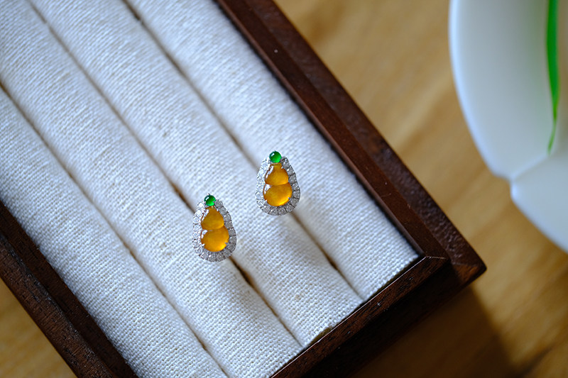 Sound of Slowness 18K Gold Diamond Inlaid Natural Burmese Jadeite Light Green Yellow Jade Purple Jadeite Earrings Ear Studs
