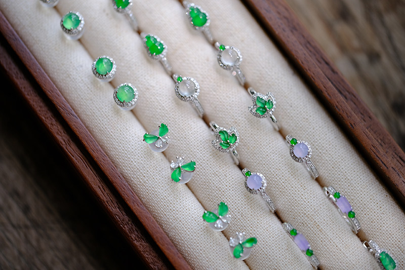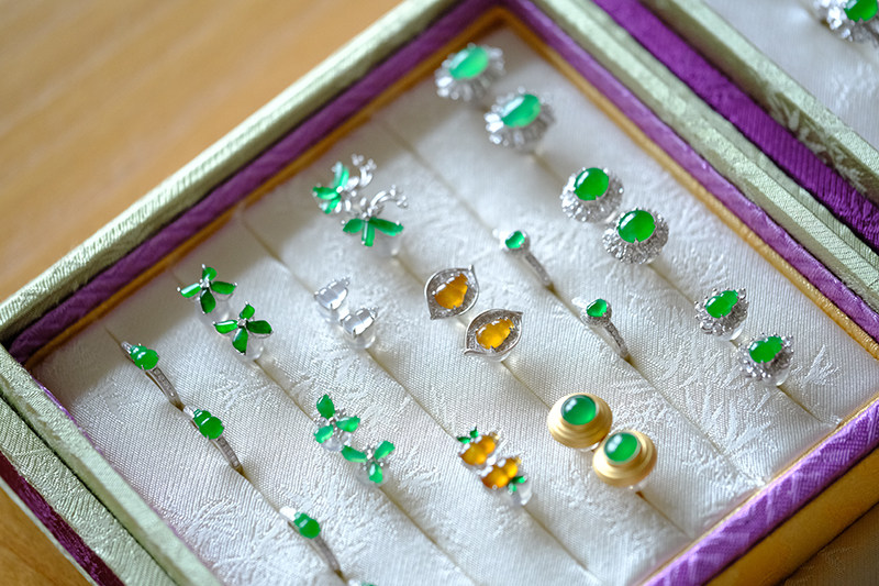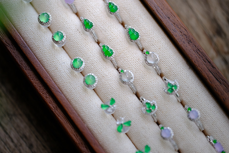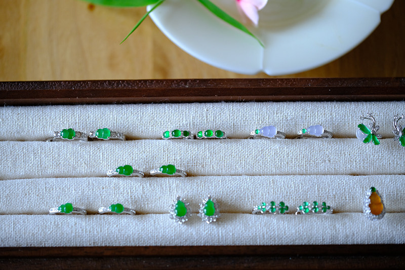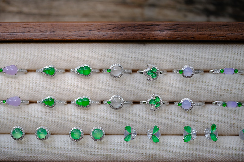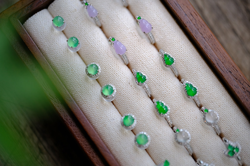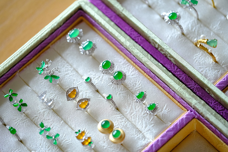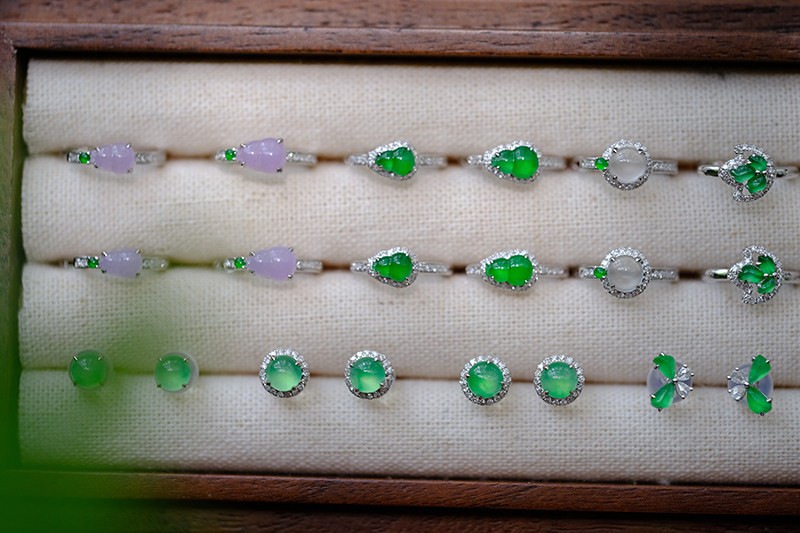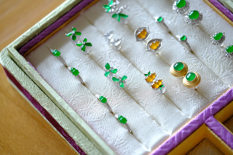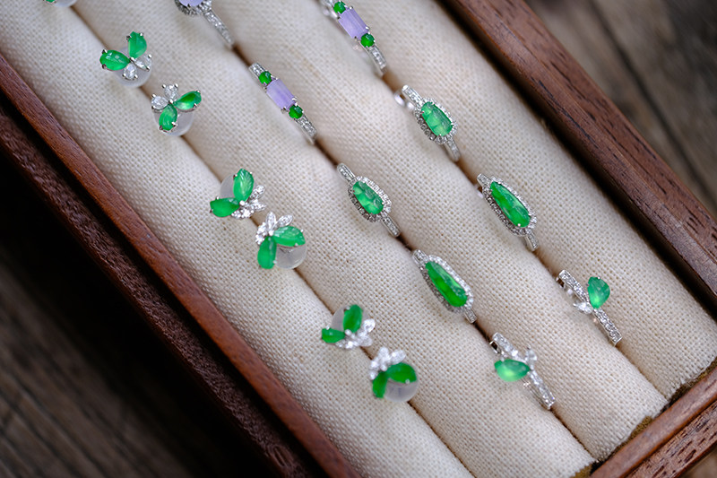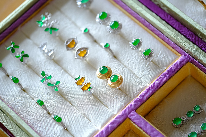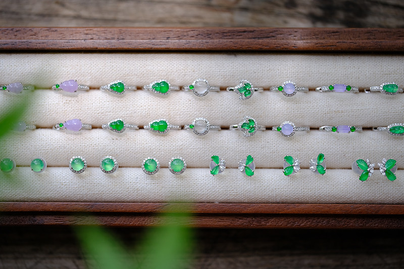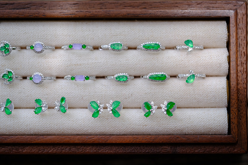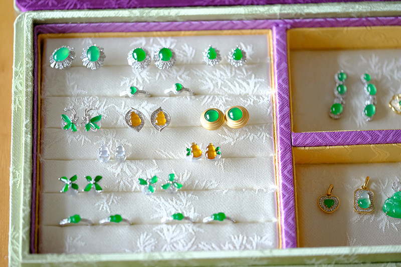 Sound of Slowness 18K Gold Diamond Inlaid Natural Burmese Jadeite Light Green Yellow Jade Purple Jadeite Earrings Ear Studs