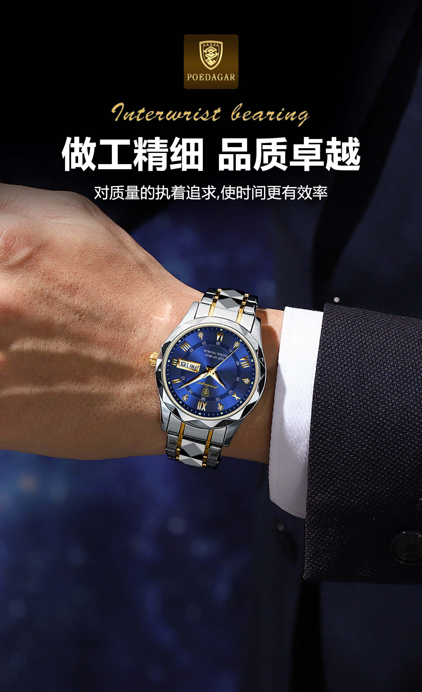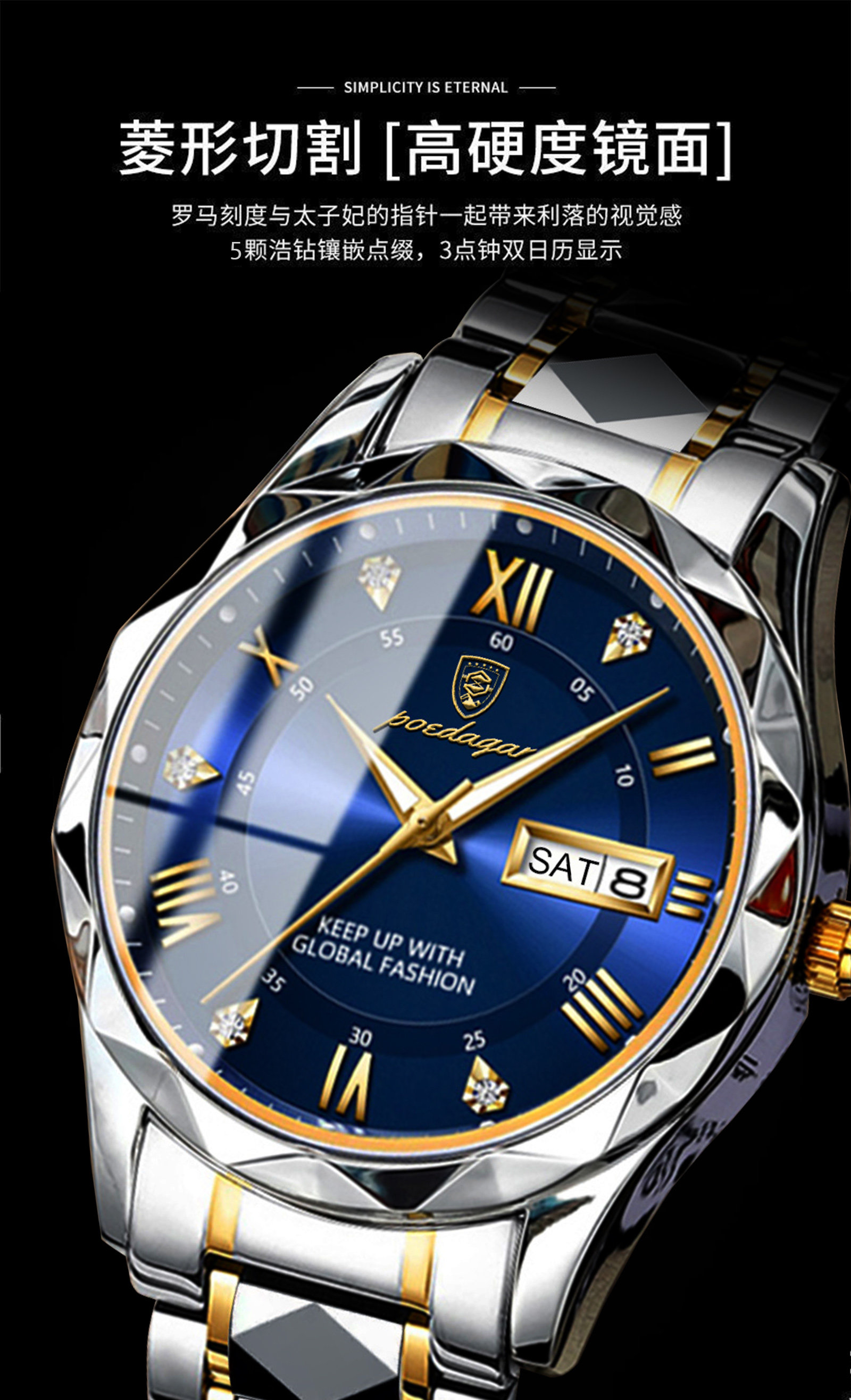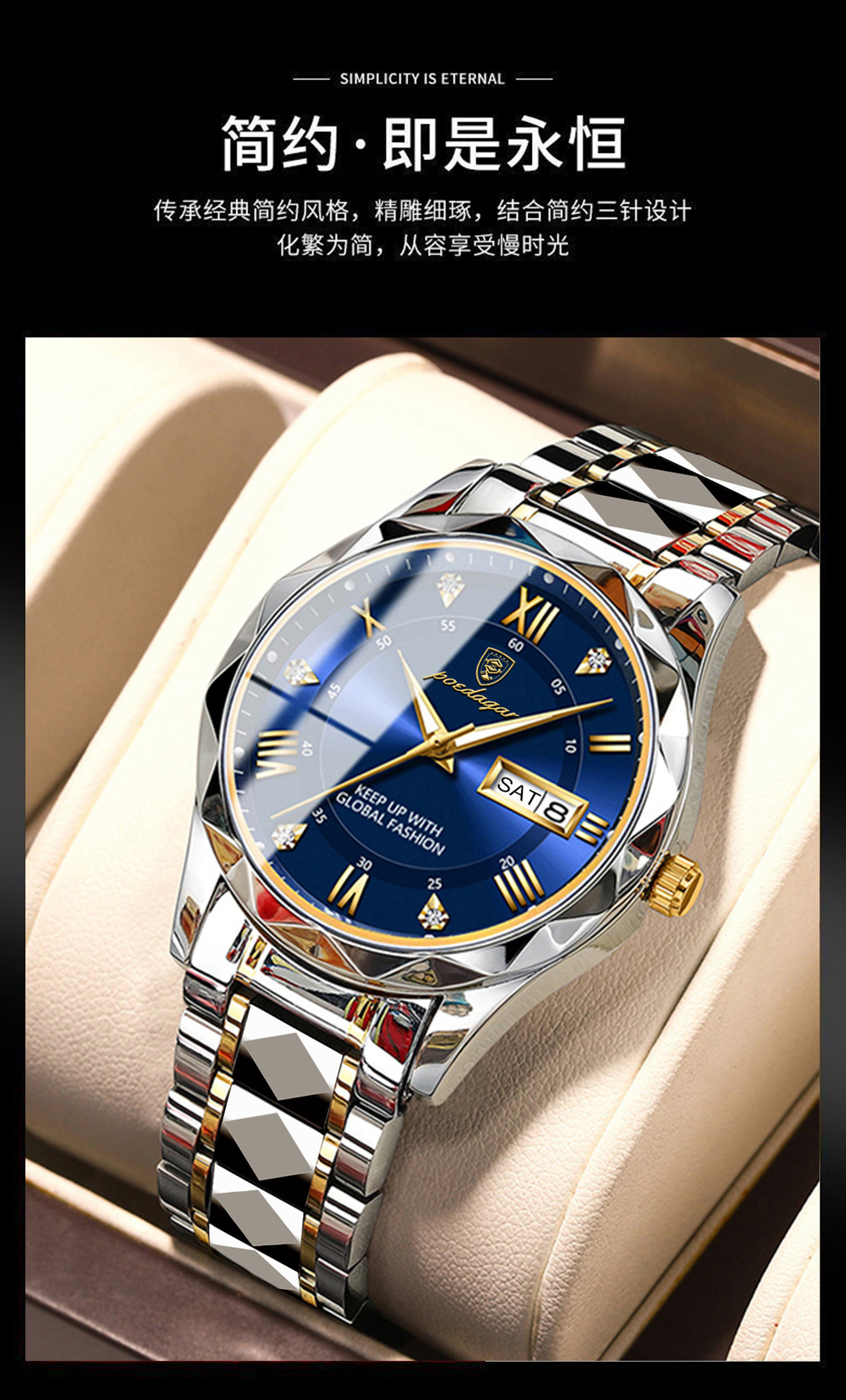 Swiss Genuine Men's Watch Waterproof Luminous Trendy Fashion Business Watch Men's Student Dual Calendar Quartz Watch