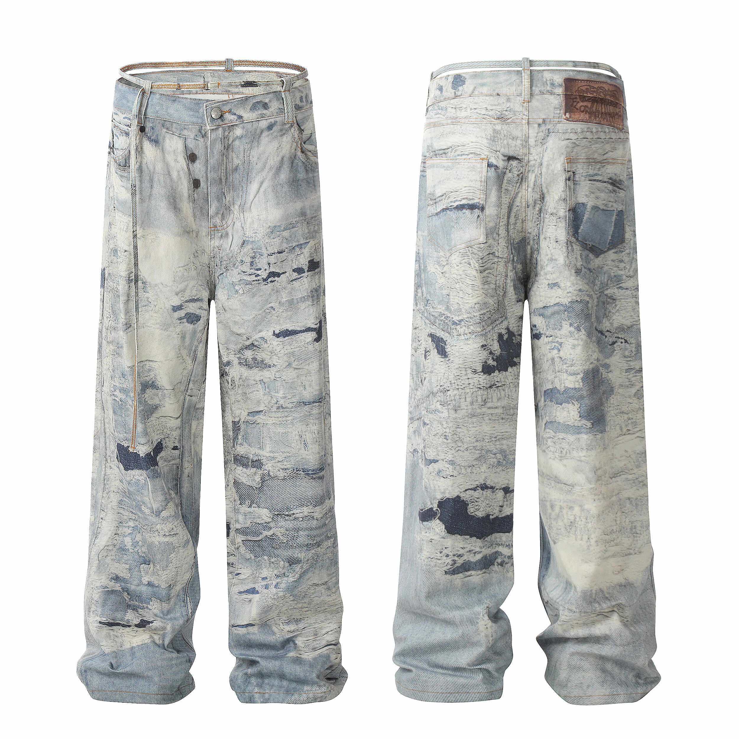 Original Independent Ac Style 1981 Trendy Brand Jeans with Chain, Splash Ink, Mud Dye, 3D Stereo Print, Casual Internet Celebrity Style