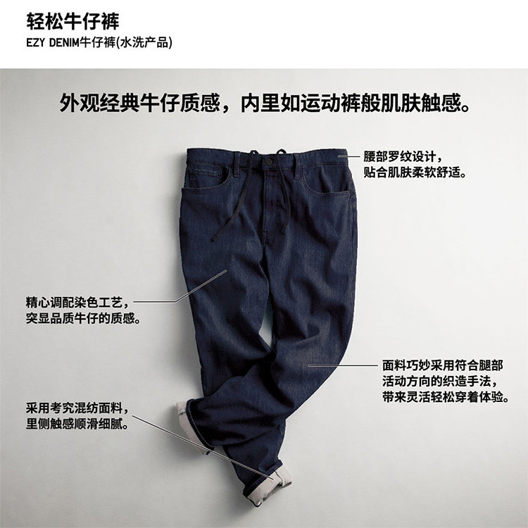 Regular Fit Uniqlo Men's Ezy Denim Jeans, Washed Product, Easy Denim, Stretchy, 482854
