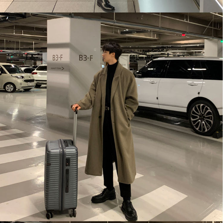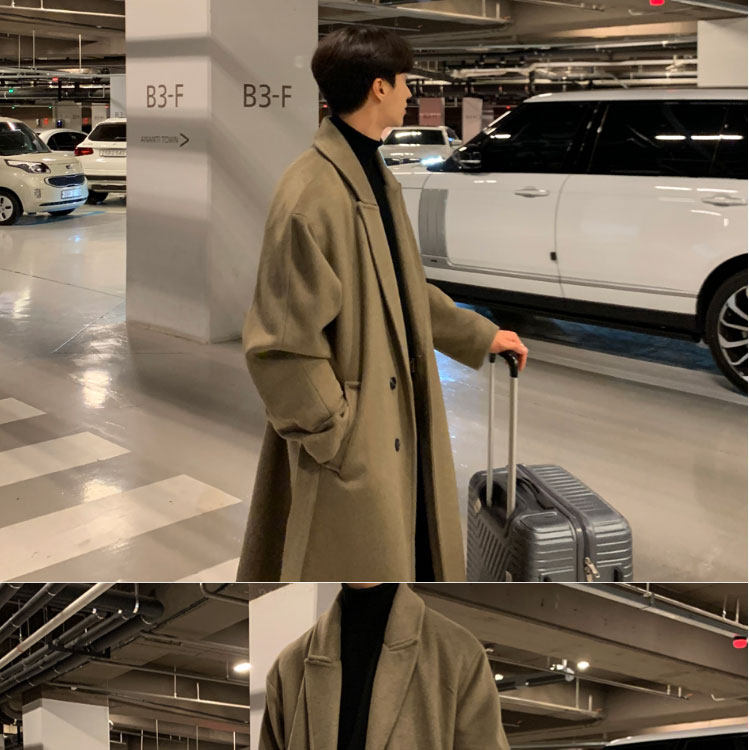 Kangshi Yishu 2026 Autumn/Winter New Woolen Coat for Men, Korean Style Mid-Length Over-The-Knee Coat, Cashmere Casual Trench Coat