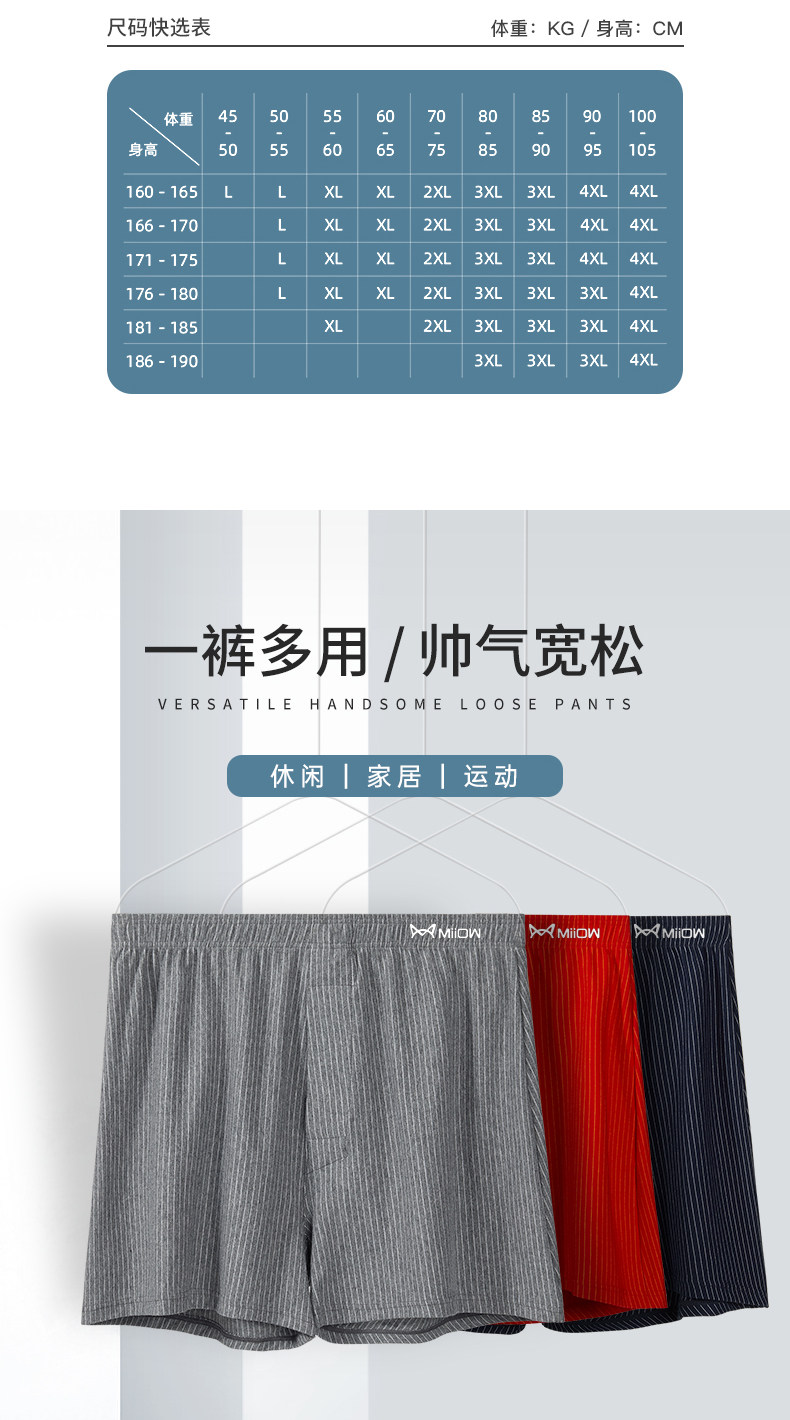 Catman Pure Cotton Men's Boxer Shorts Loose Large Size Outerwear Youth Striped Summer New Style Boys' Boxer Shorts