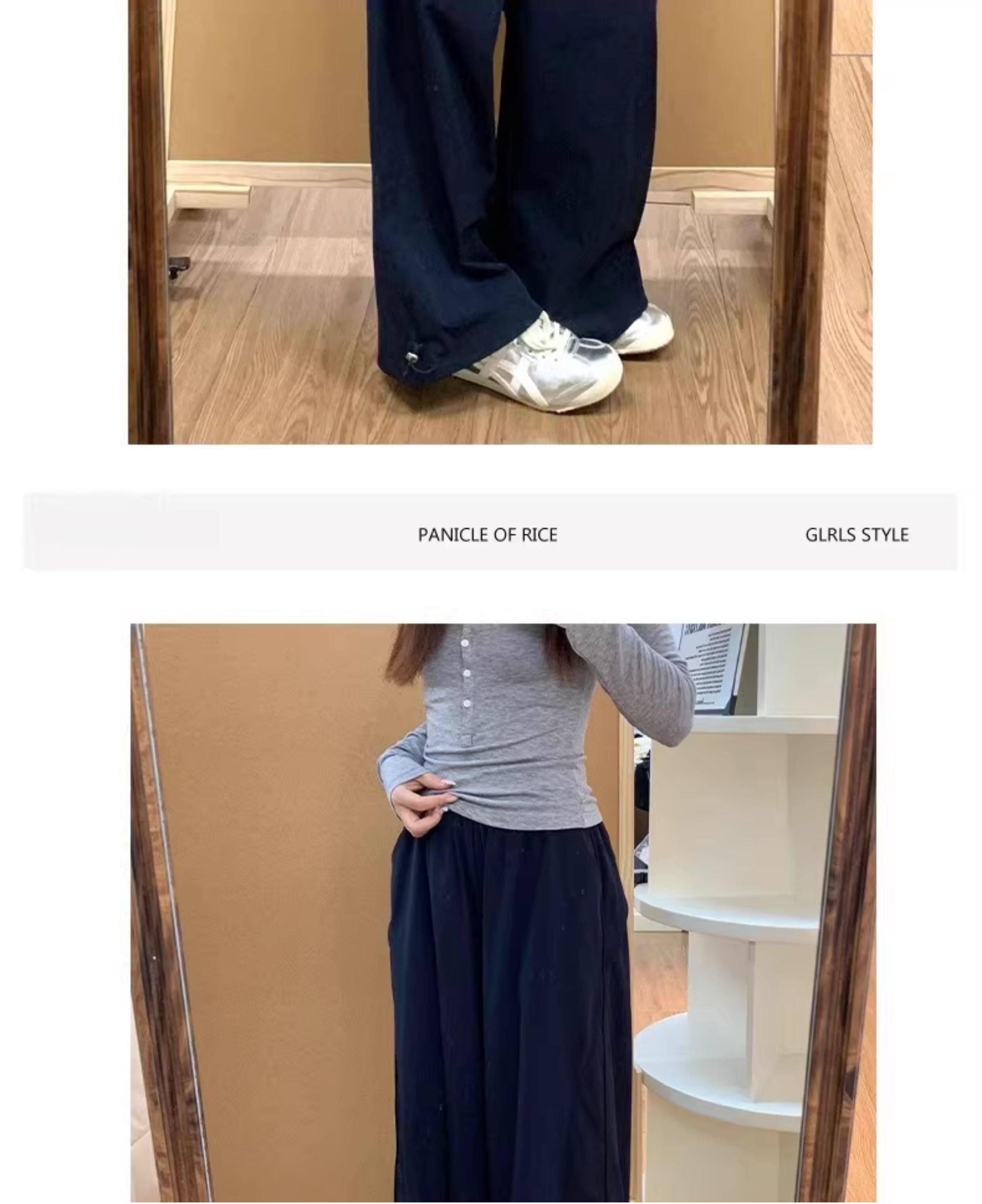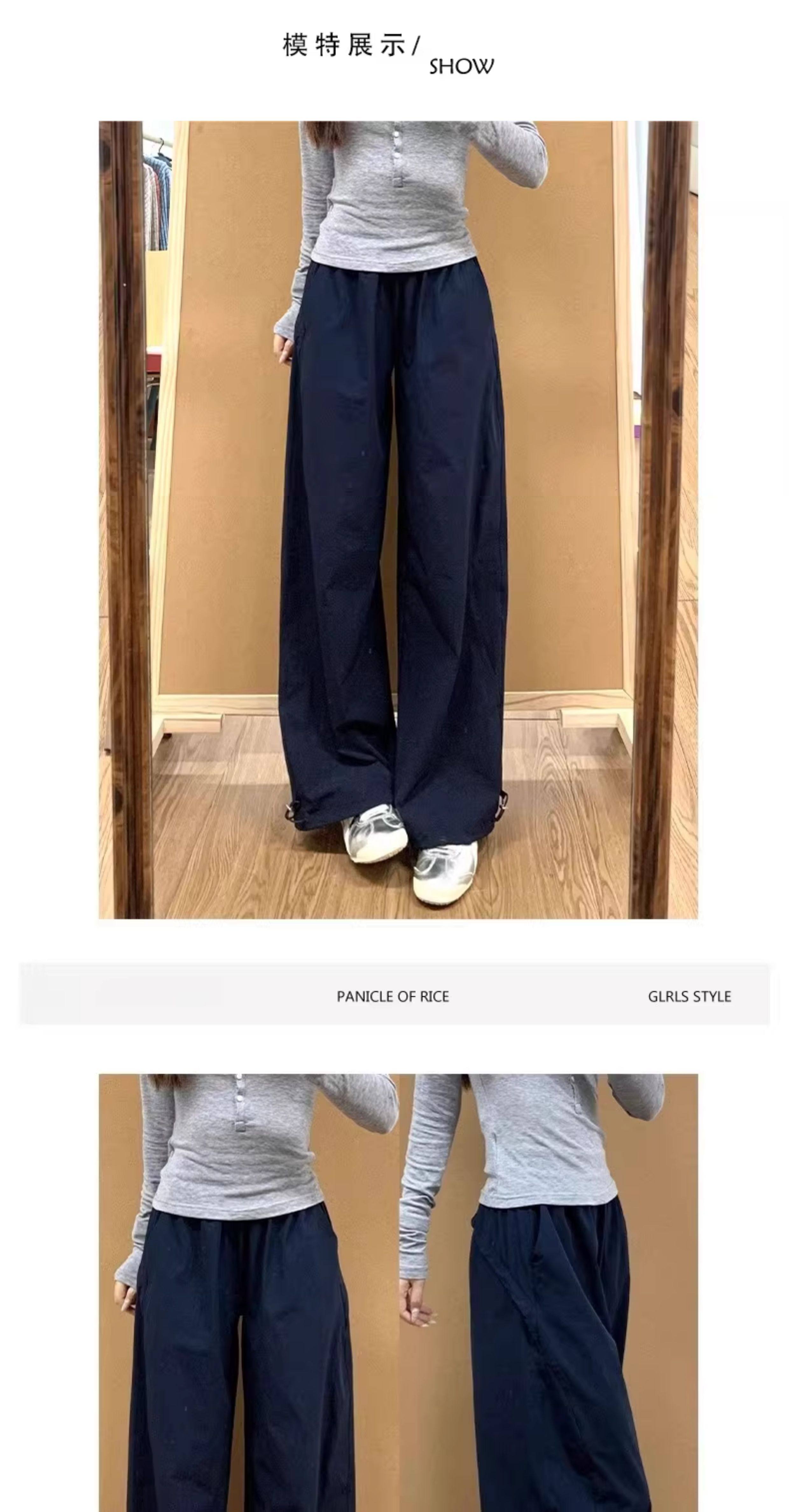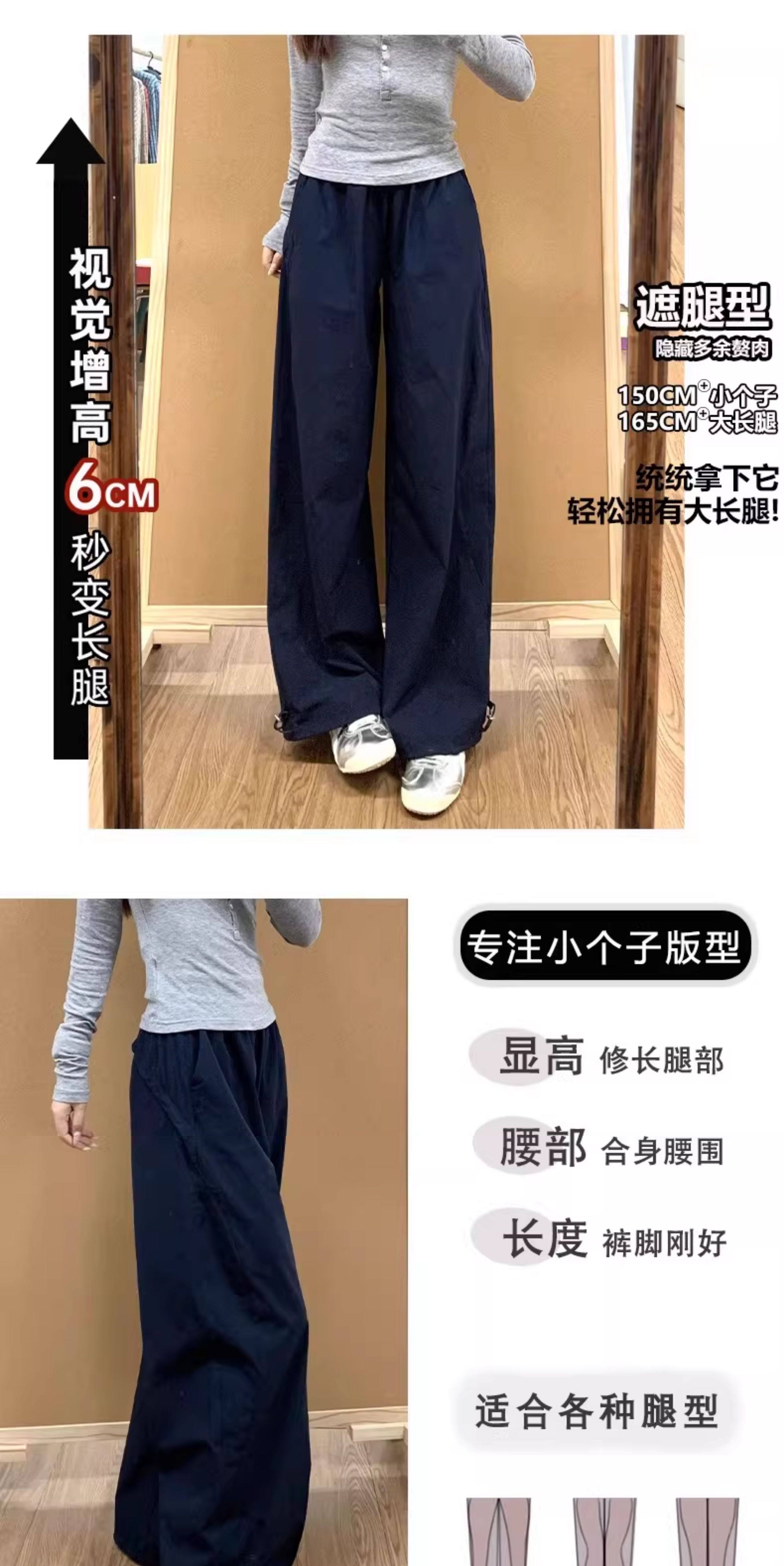 Navy Blue Quick-Drying Work Pants for Women, New Spring High-Waisted Slimming Wide-Leg Pants for Petite Figures, Casual Straight-Leg Pants