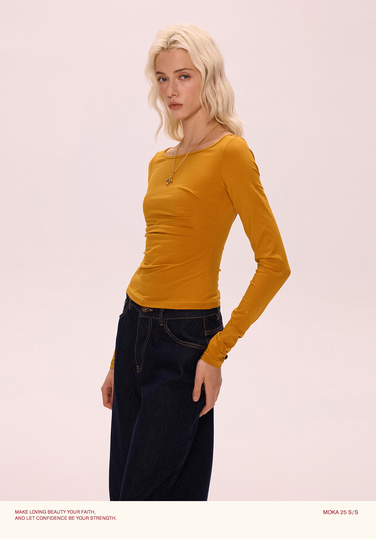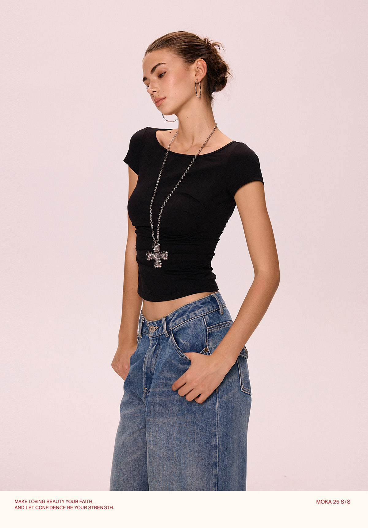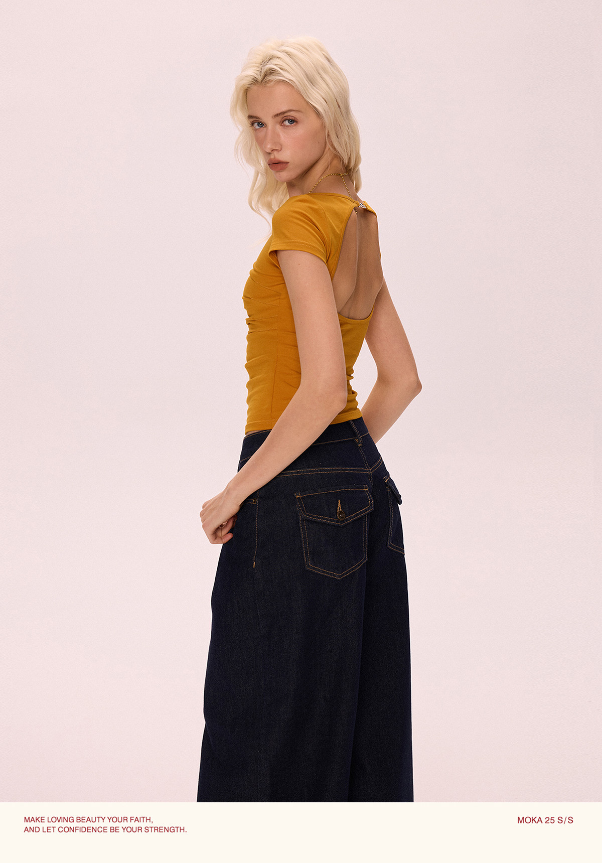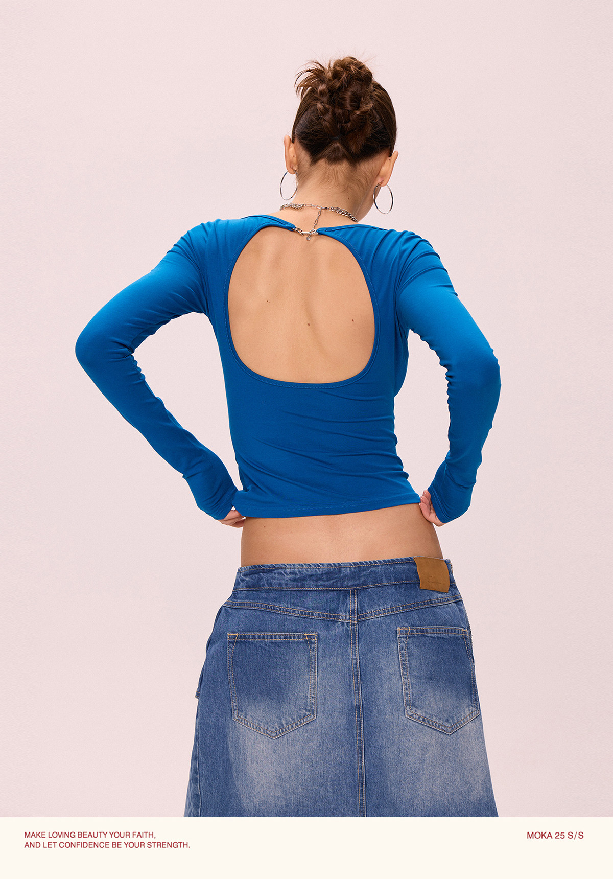 Mokacake 2026 New Autumn and Summer Blue Long and Short Sleeve Backless T-Shirt Top for Women, High-End Base Shirt Hot Sale