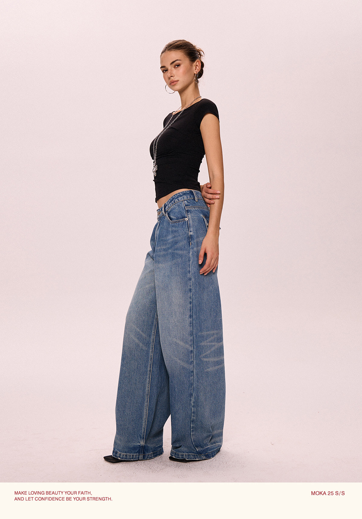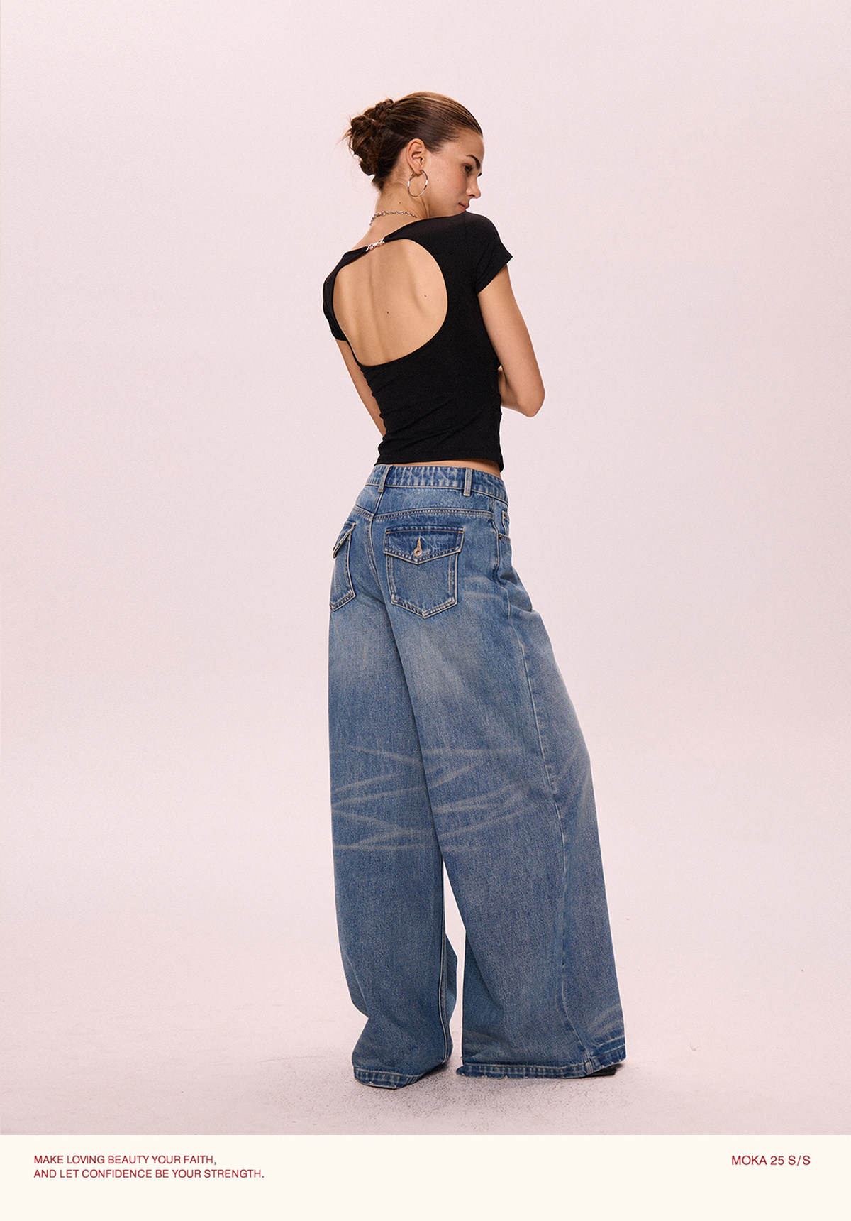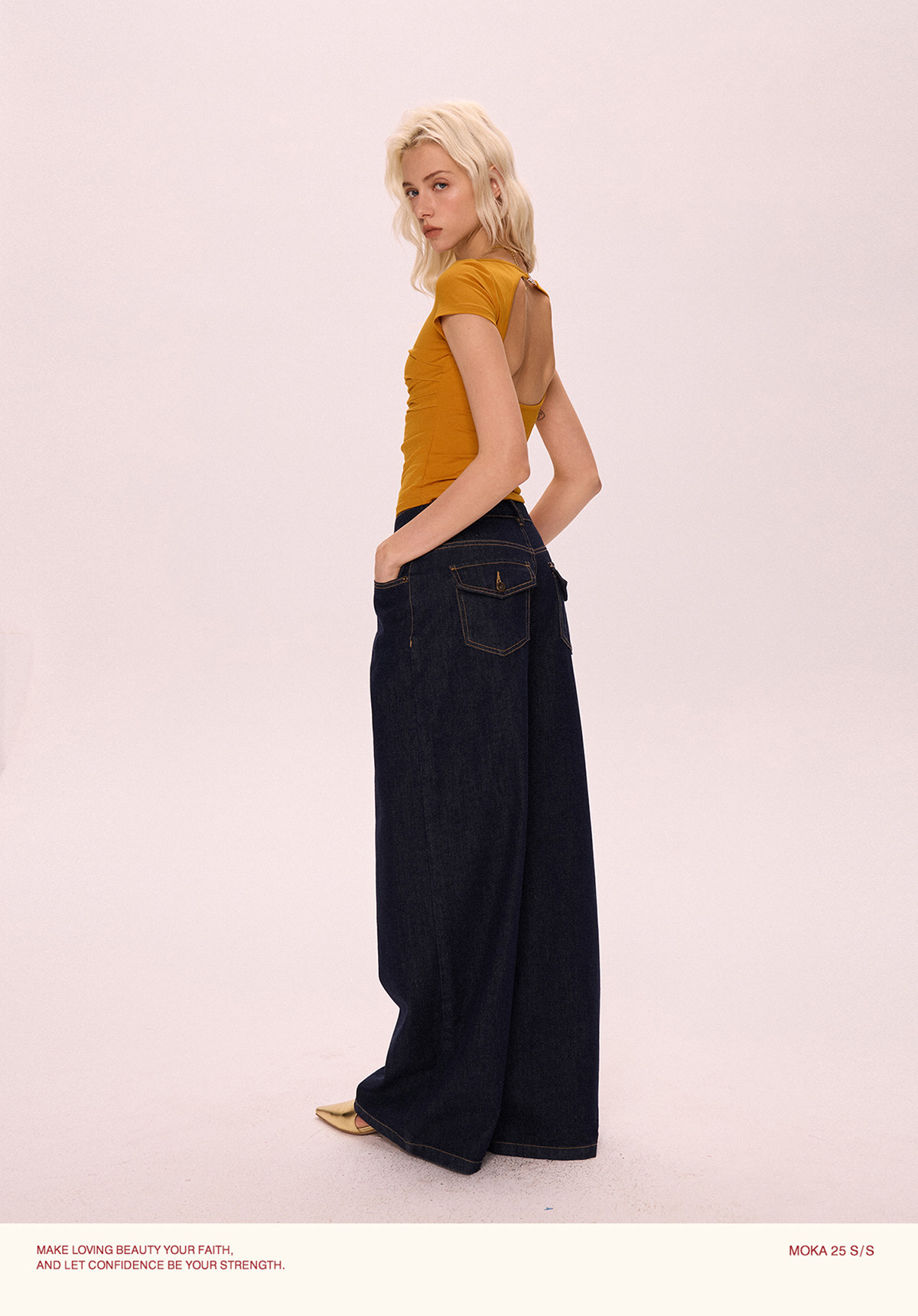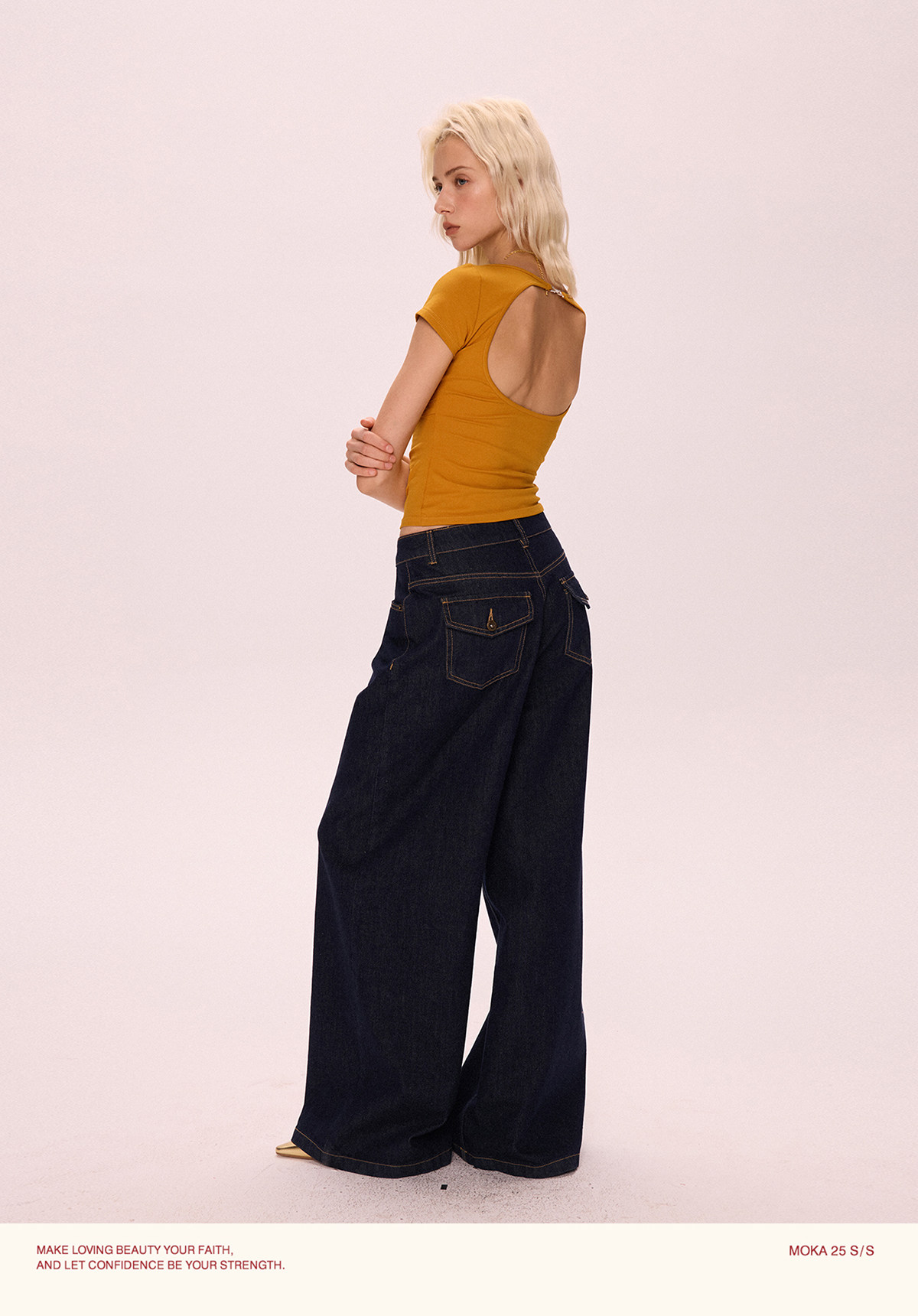 Mokacake 2026 New Autumn and Summer Blue Long and Short Sleeve Backless T-Shirt Top for Women, High-End Base Shirt Hot Sale