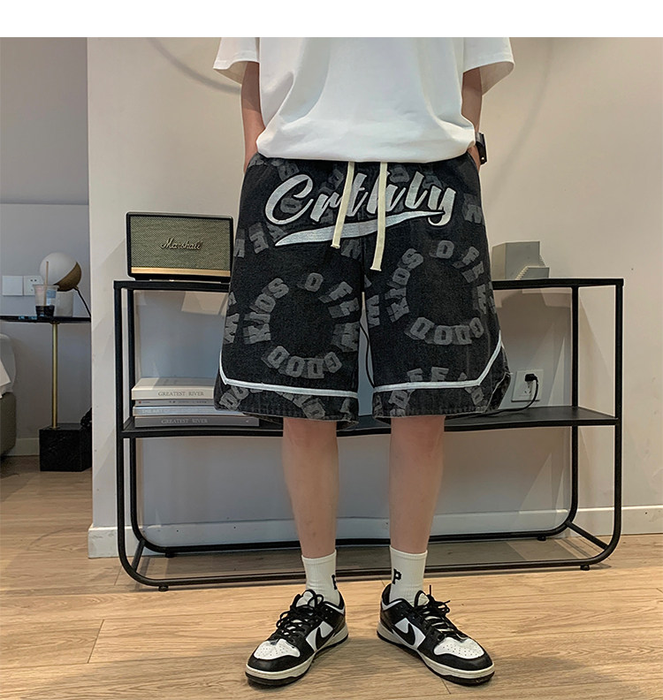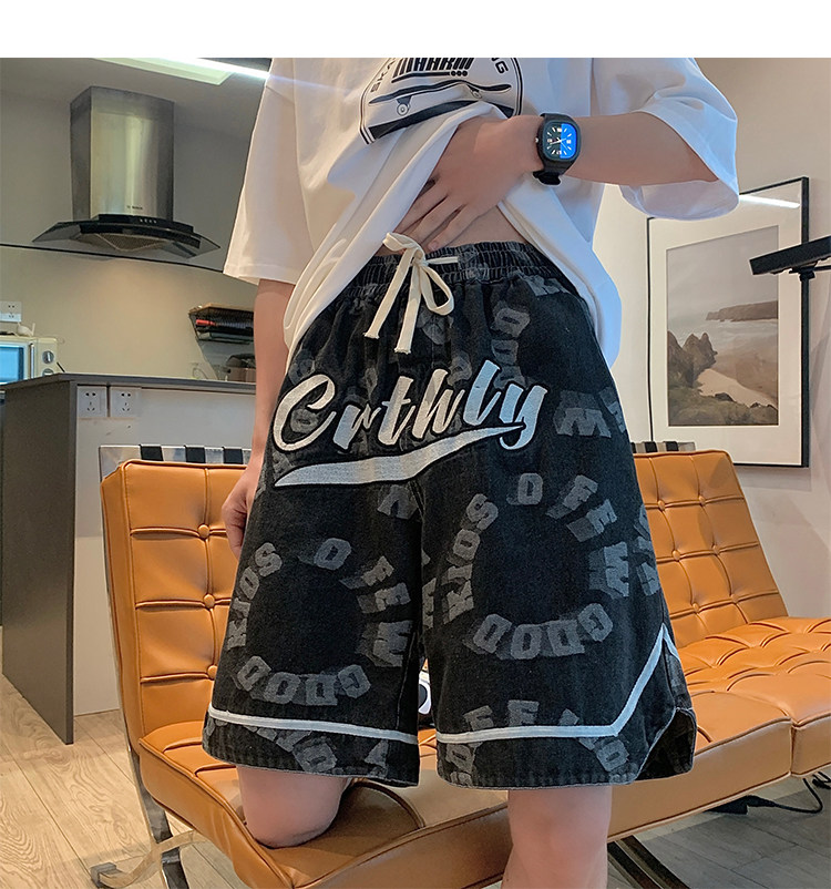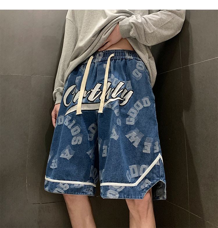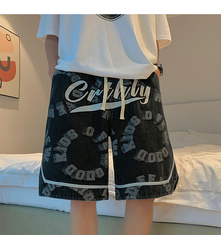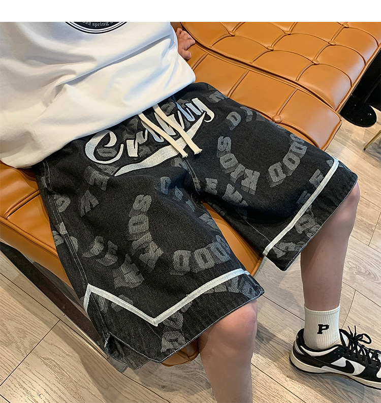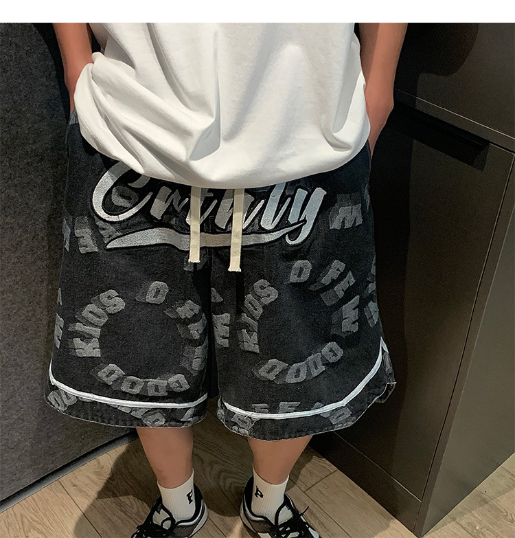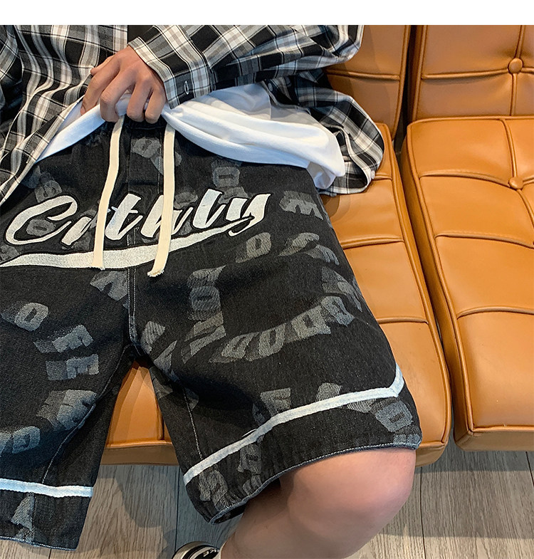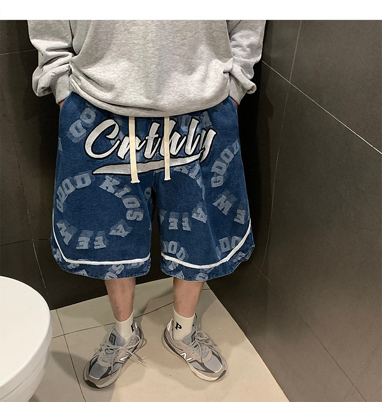 American-Style Denim Shorts for Men, Summer Loose Fit, Large Size, Five-Point Length, High Street Fashion Brand, Men's Pants