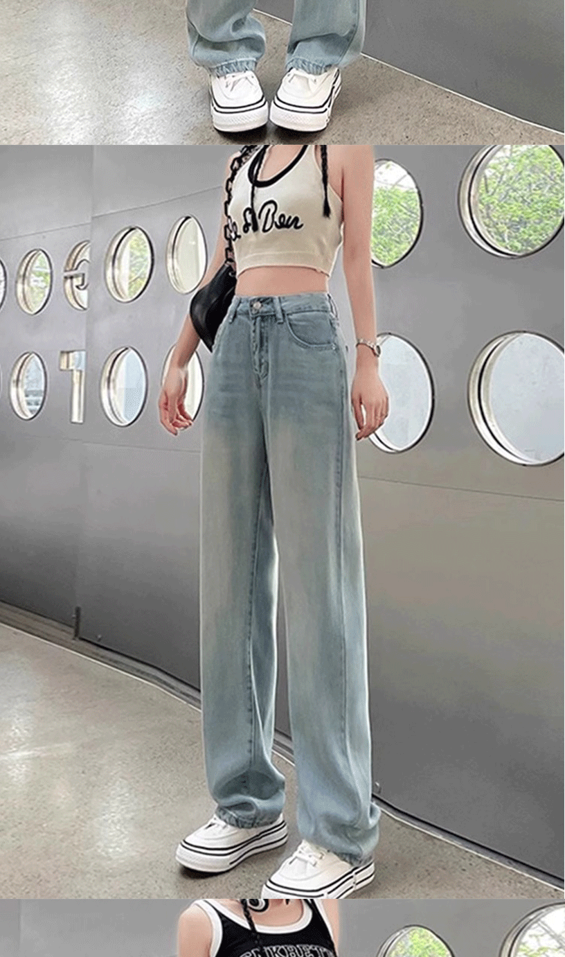 Tencel Jeans for Women, Summer Thin Style, Plus Size, Suitable for Pear-Shaped Body, Hip-Covering, Slimming Pants, Ice Silk Straight Wide-Leg Pants