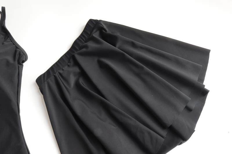 Teenage Black Two-Piece Swimsuit with Skirt, Tummy-Covering, Slimming, Versatile Skirt, Bikini Skirt for the Lower Body