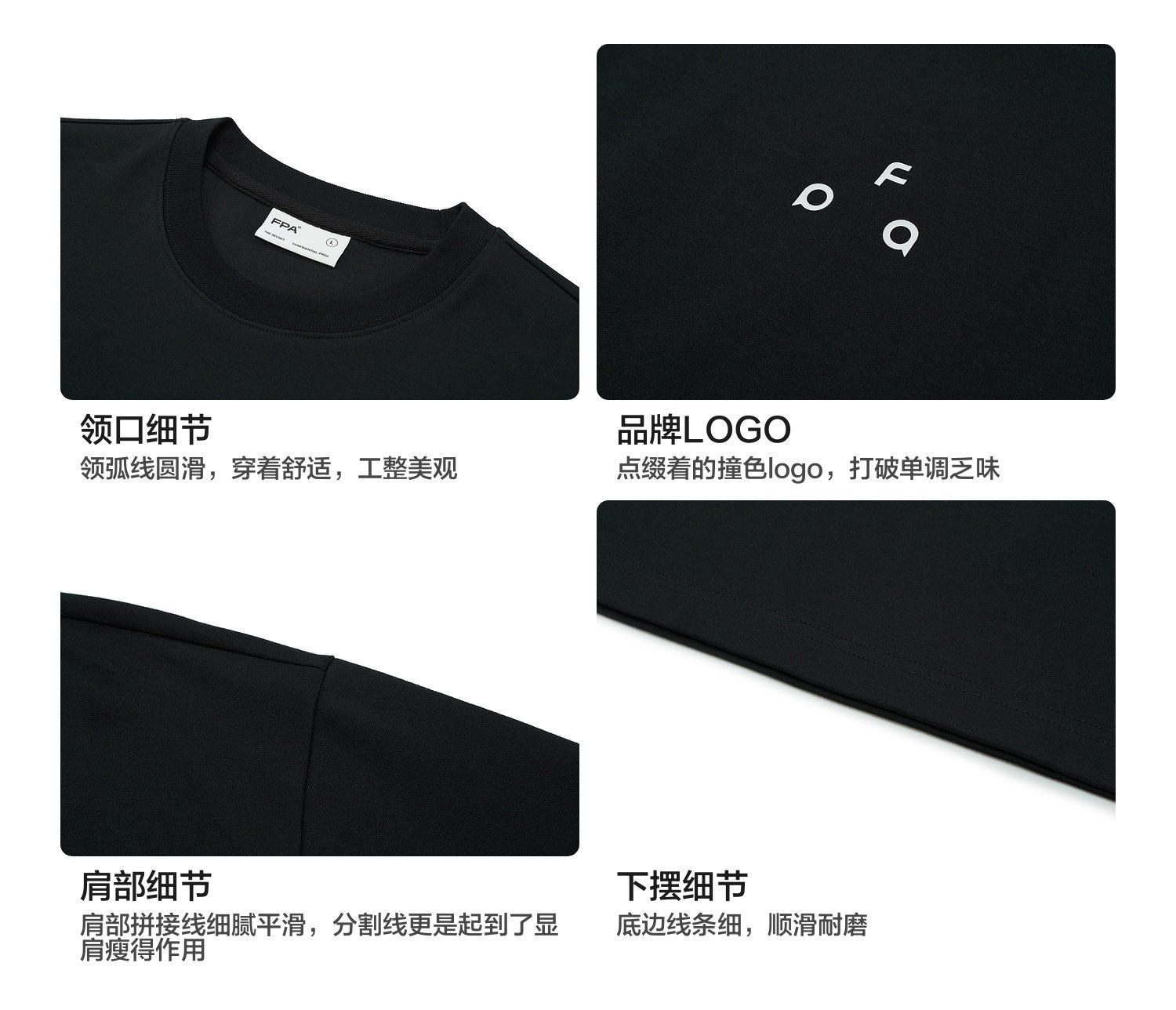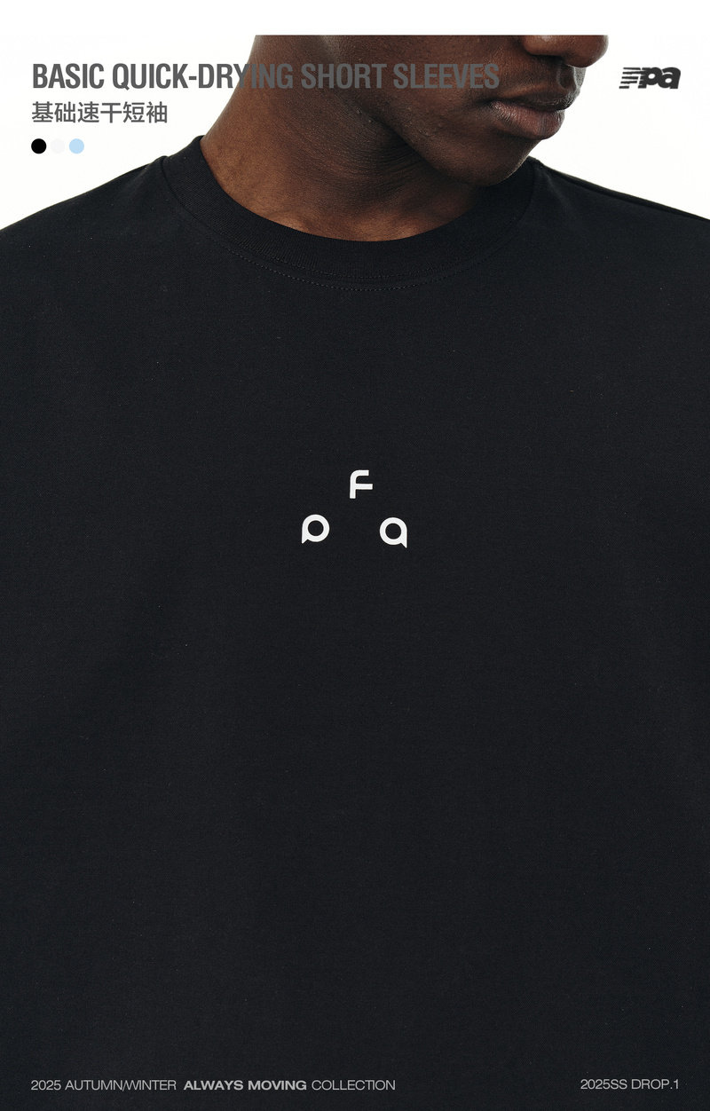 Fpa Sports 7A Antibacterial Quick-Drying Ice Feel Short Sleeve National Trend Summer Loose Round Neck Casual Couple Wear Black T-Shirt