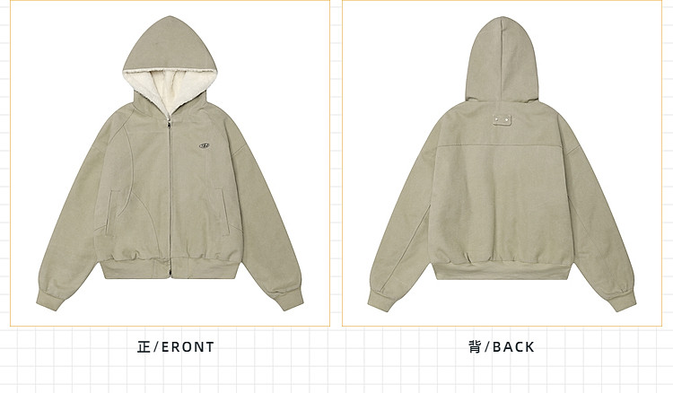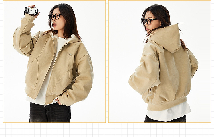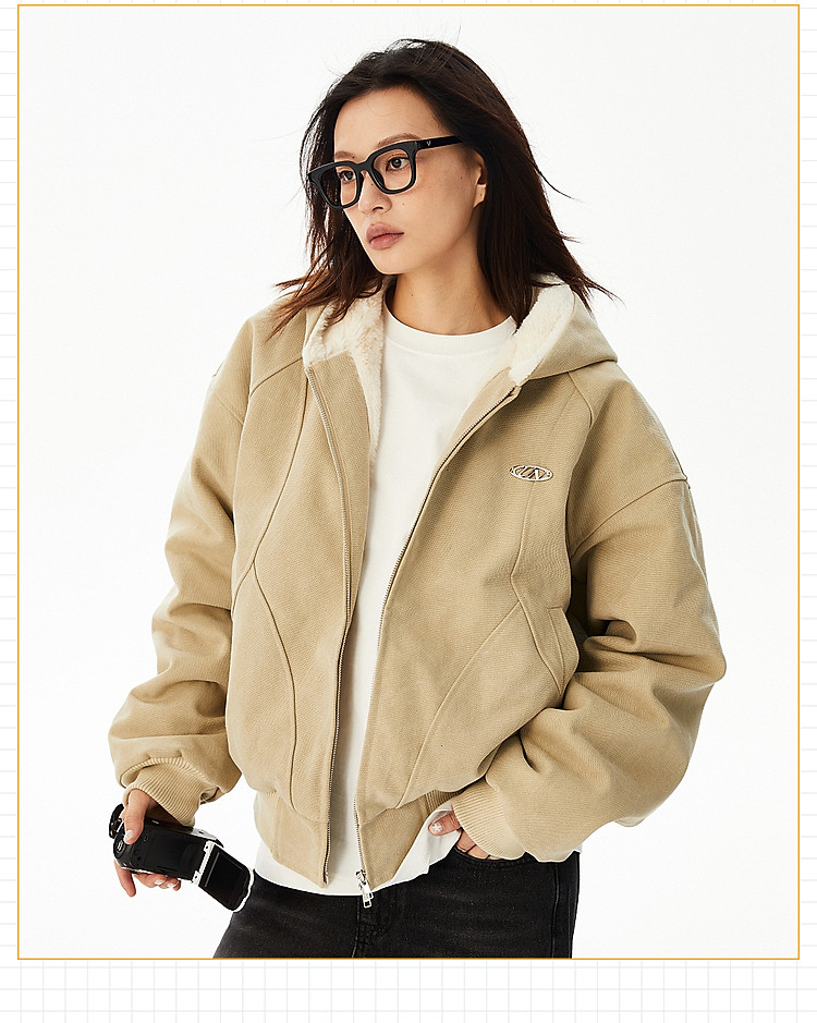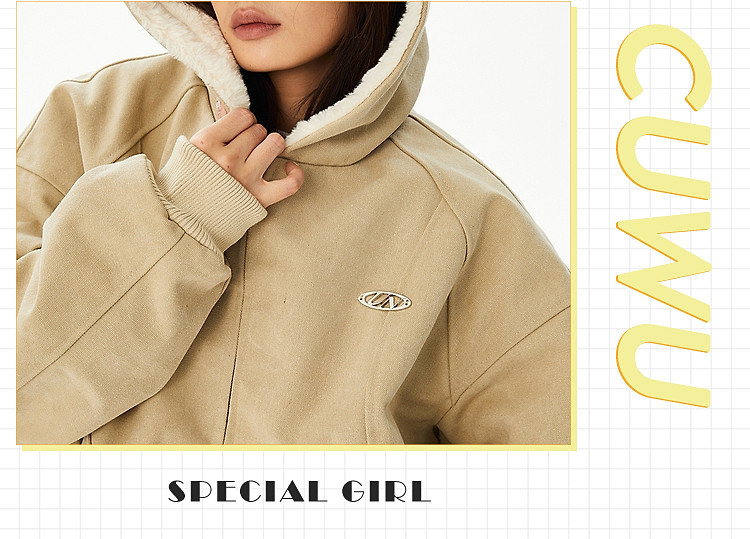Cuwu American Retro Style Fleece-Lined Thickened Jacket for Women, Winter Cleanfit Washed Warm Hooded Jacket Cotton Coat