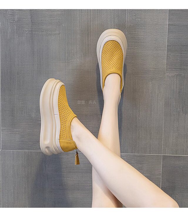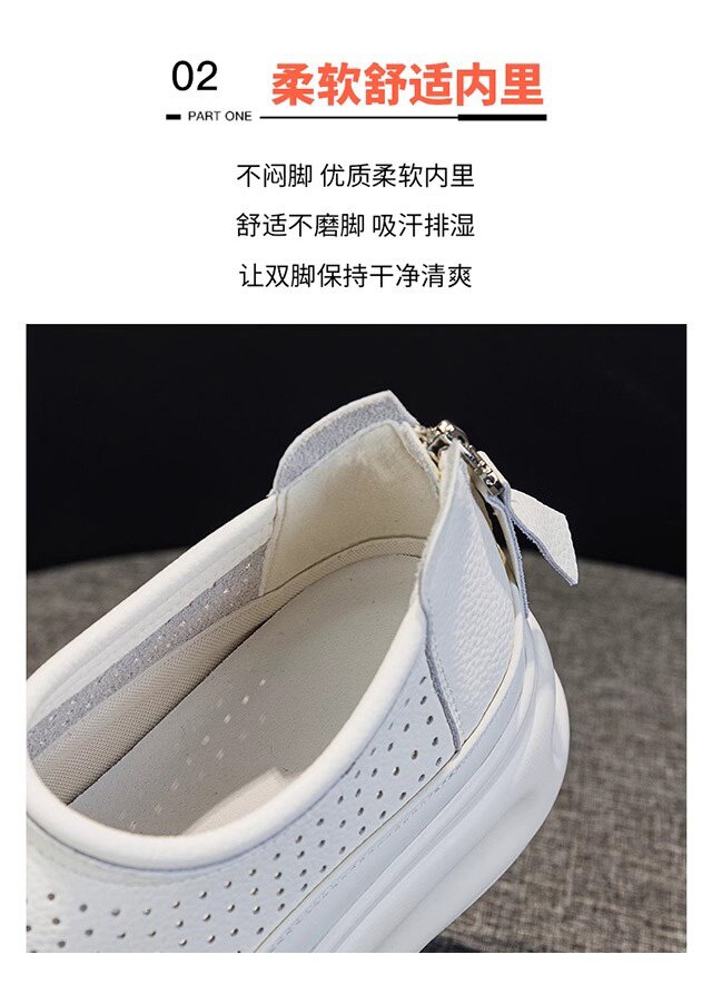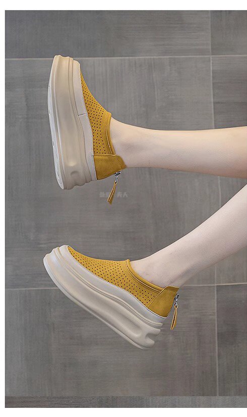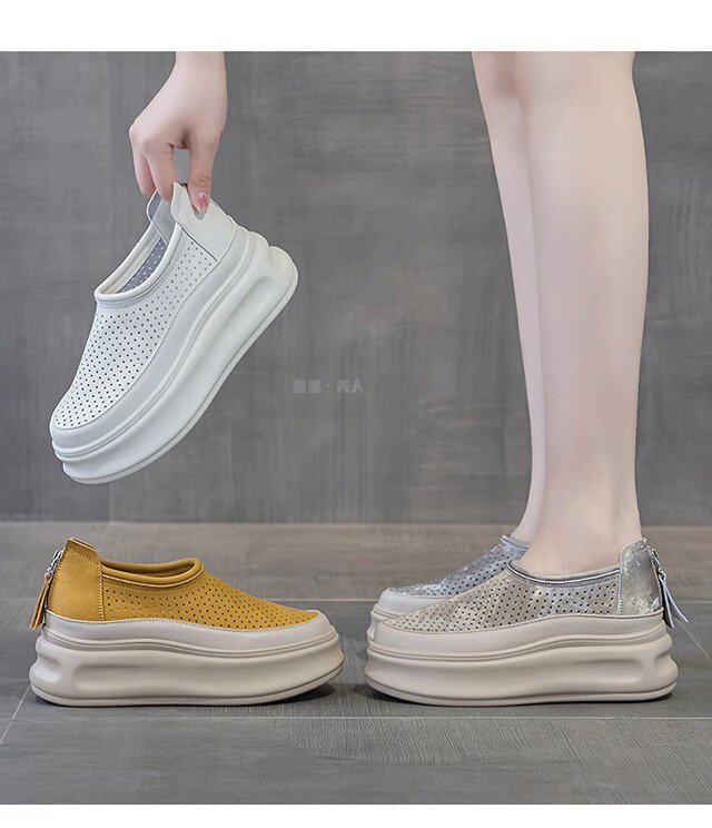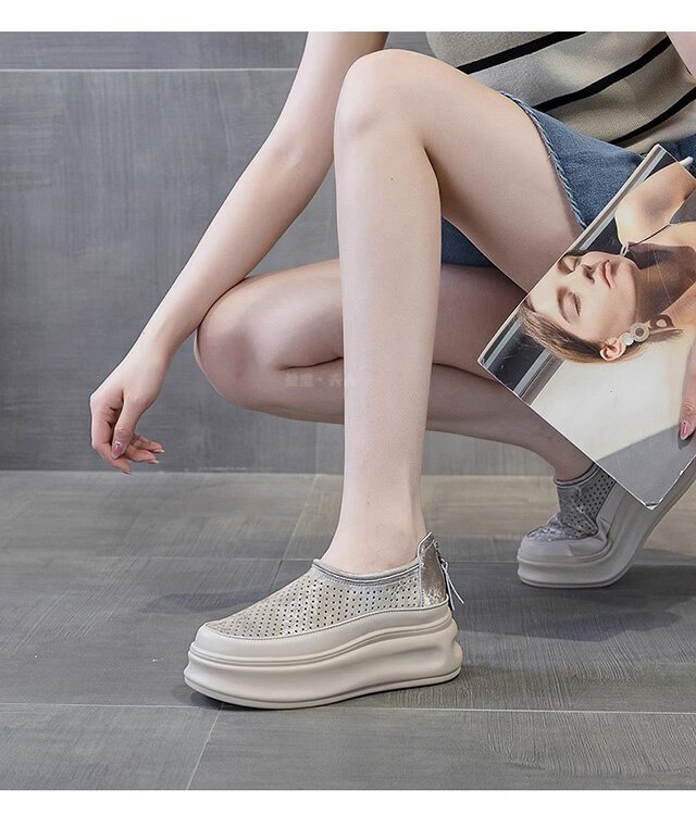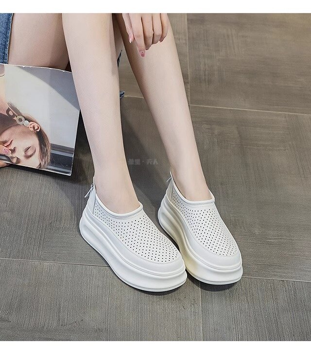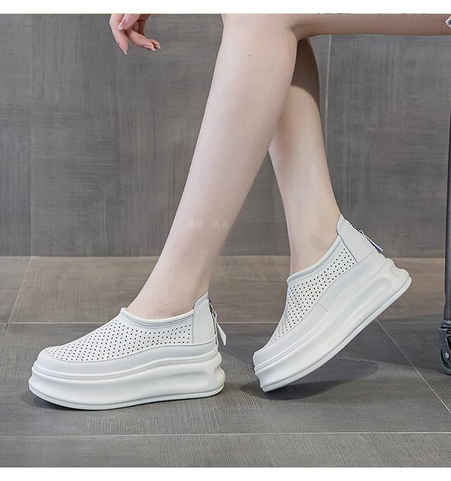 Three-Layer Thick-Soled Hollow Platform Shoes for Women, 2026 Spring and Summer New Versatile Genuine Leather Breathable Sneakers, Height-Increasing Casual Shoes