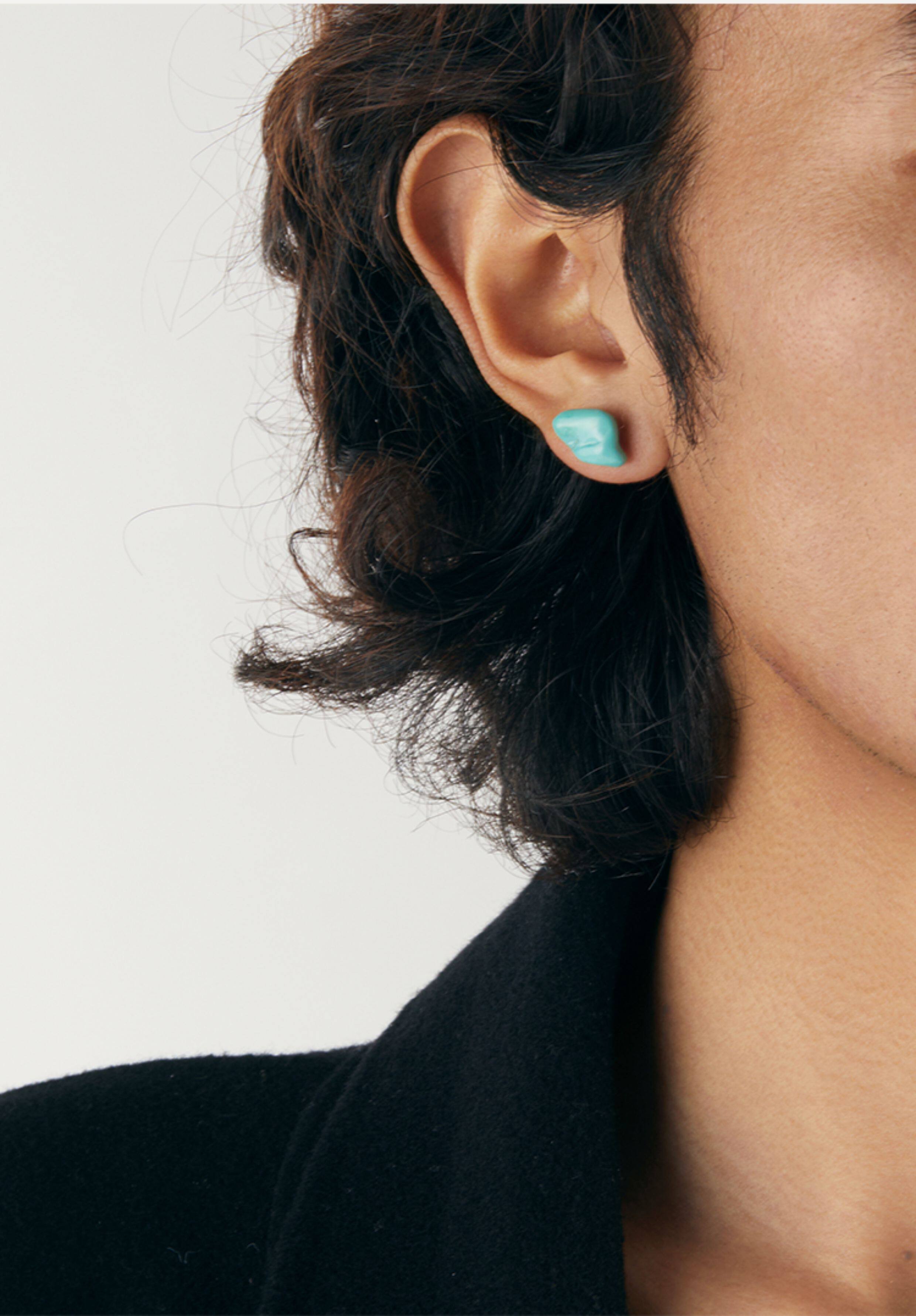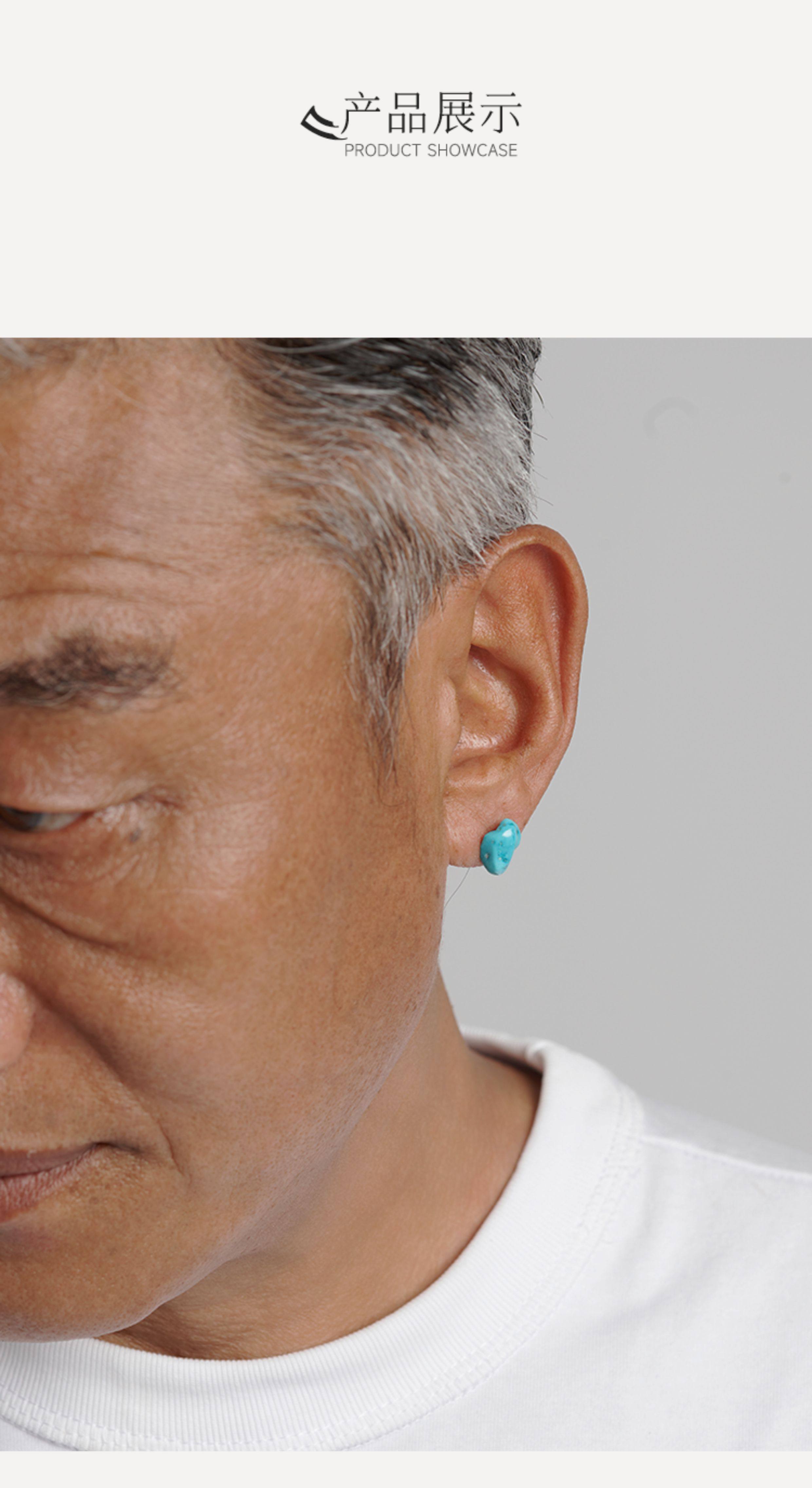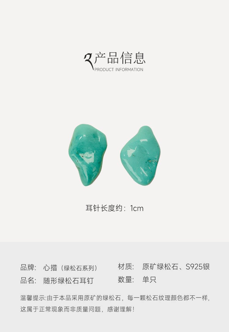 Jia Ru·Xin Cuo Freeform Turquoise Sterling Silver Earrings Natural Raw Mineral Original Niche Unisex New Chinese Style Earrings