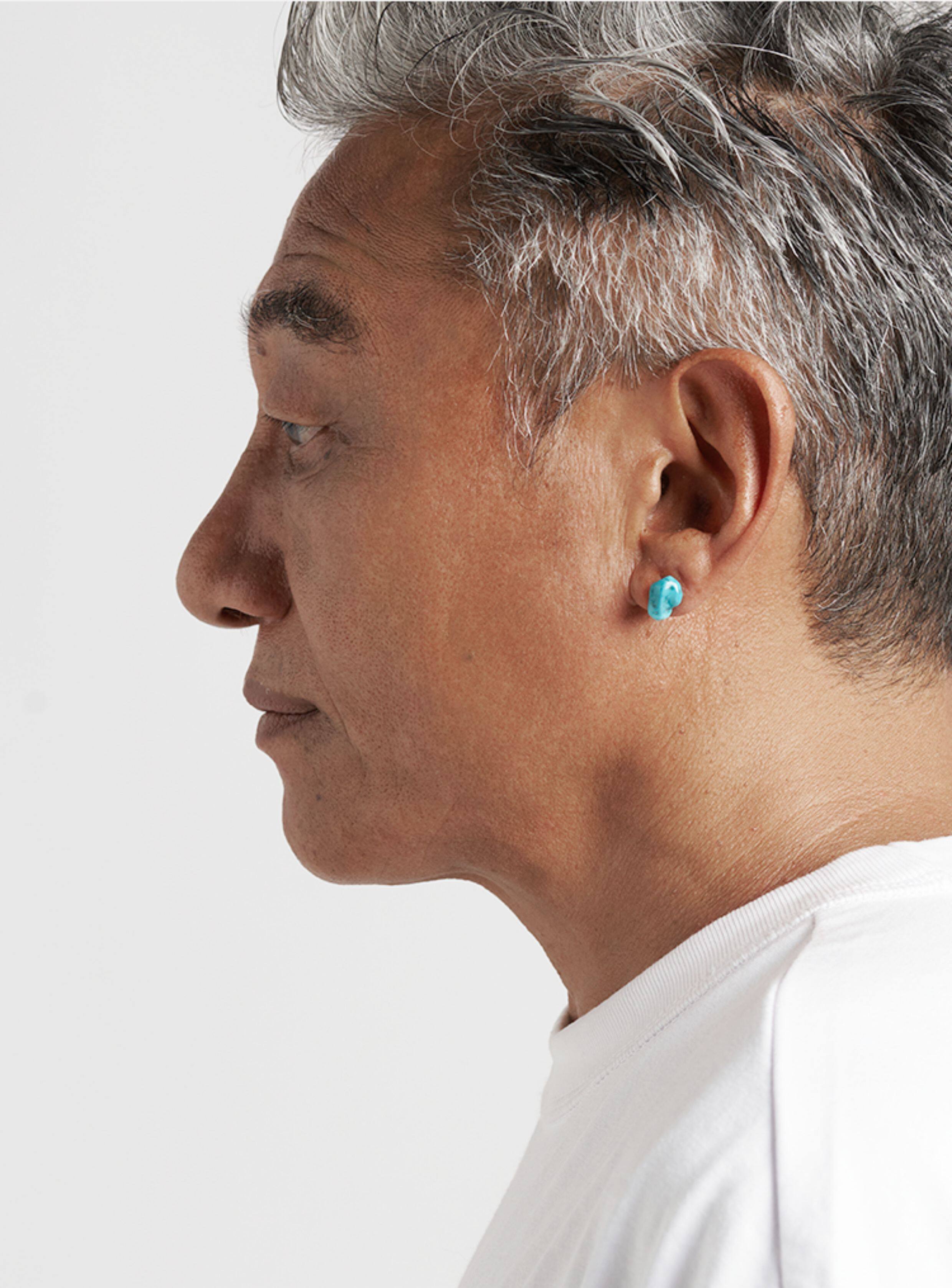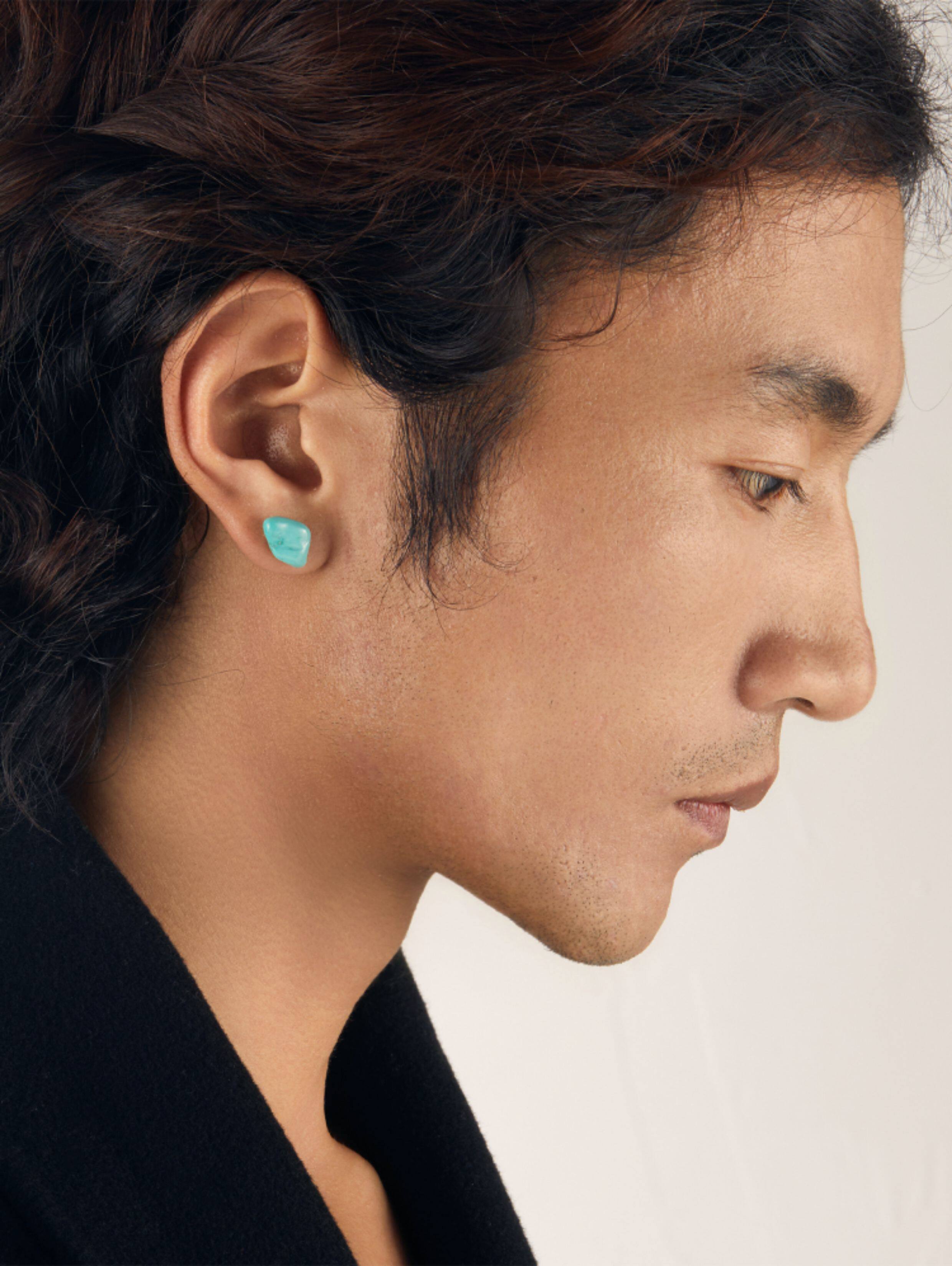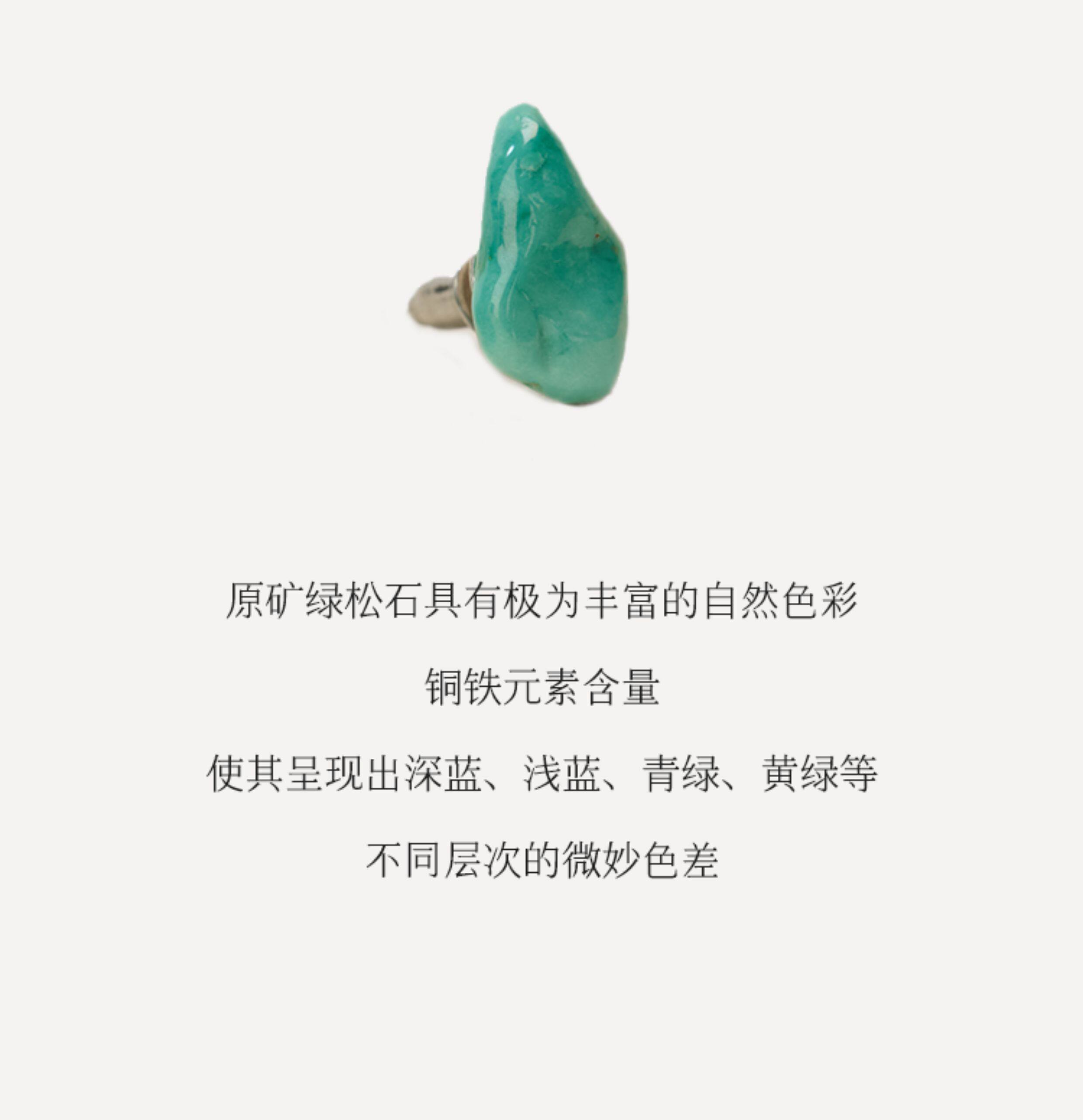 Jia Ru·Xin Cuo Freeform Turquoise Sterling Silver Earrings Natural Raw Mineral Original Niche Unisex New Chinese Style Earrings