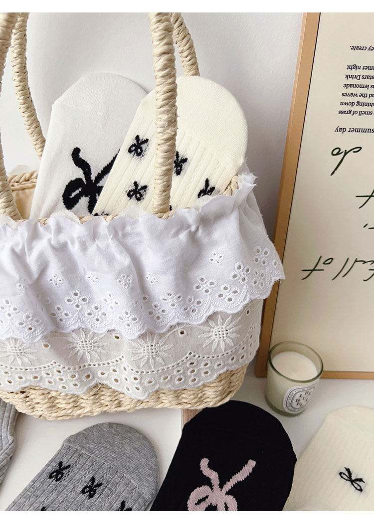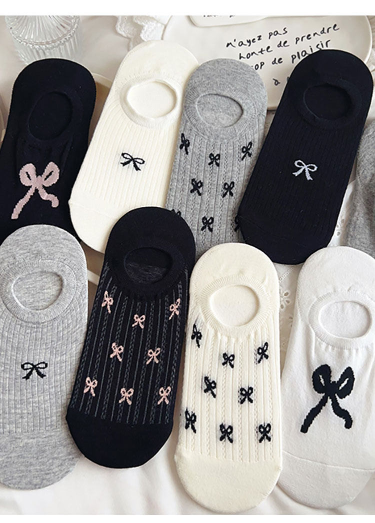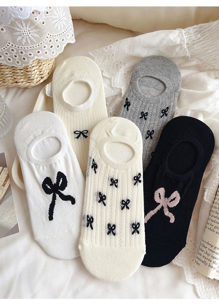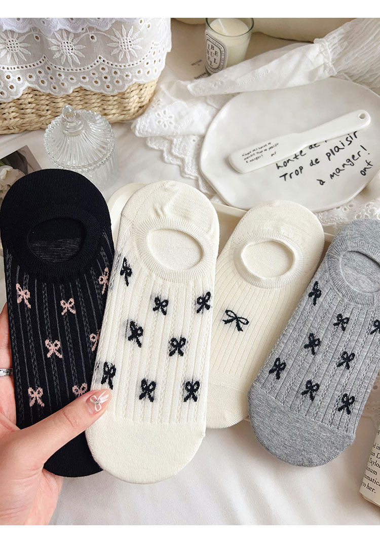 Bowknot Socks for Women, Summer Thin Pure Cotton Non-Slip Invisible Socks, White Low-Cut Short Socks