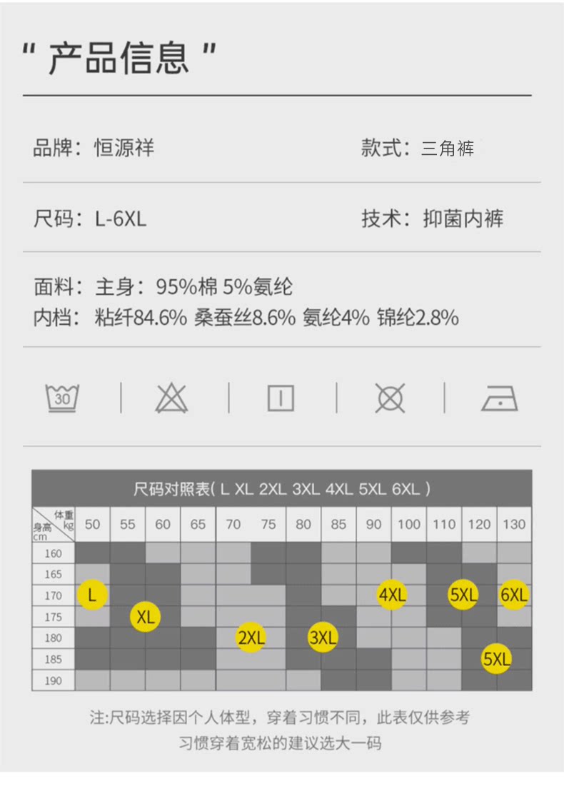 Hengyuanxiang Men's Briefs, Pure Cotton Breathable Loose Underwear for Middle-Aged and Elderly, Plus-Size Large Size Briefs