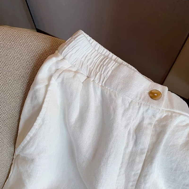 Guangzhou Thirteen Rows High-Quality Popular Items~ Summer Continues! Old Money Style White Linen Casual Wide-Leg Shorts for Women