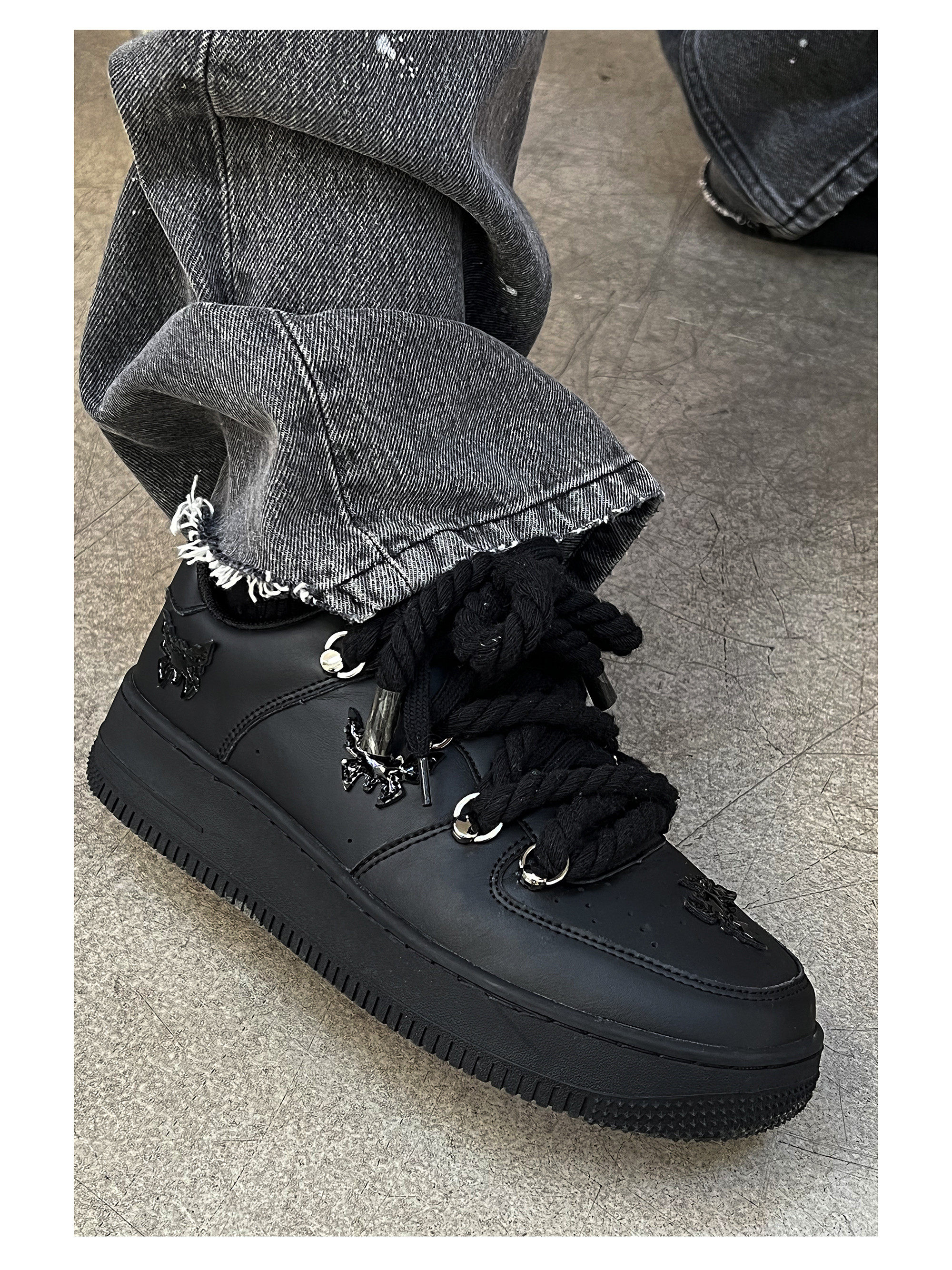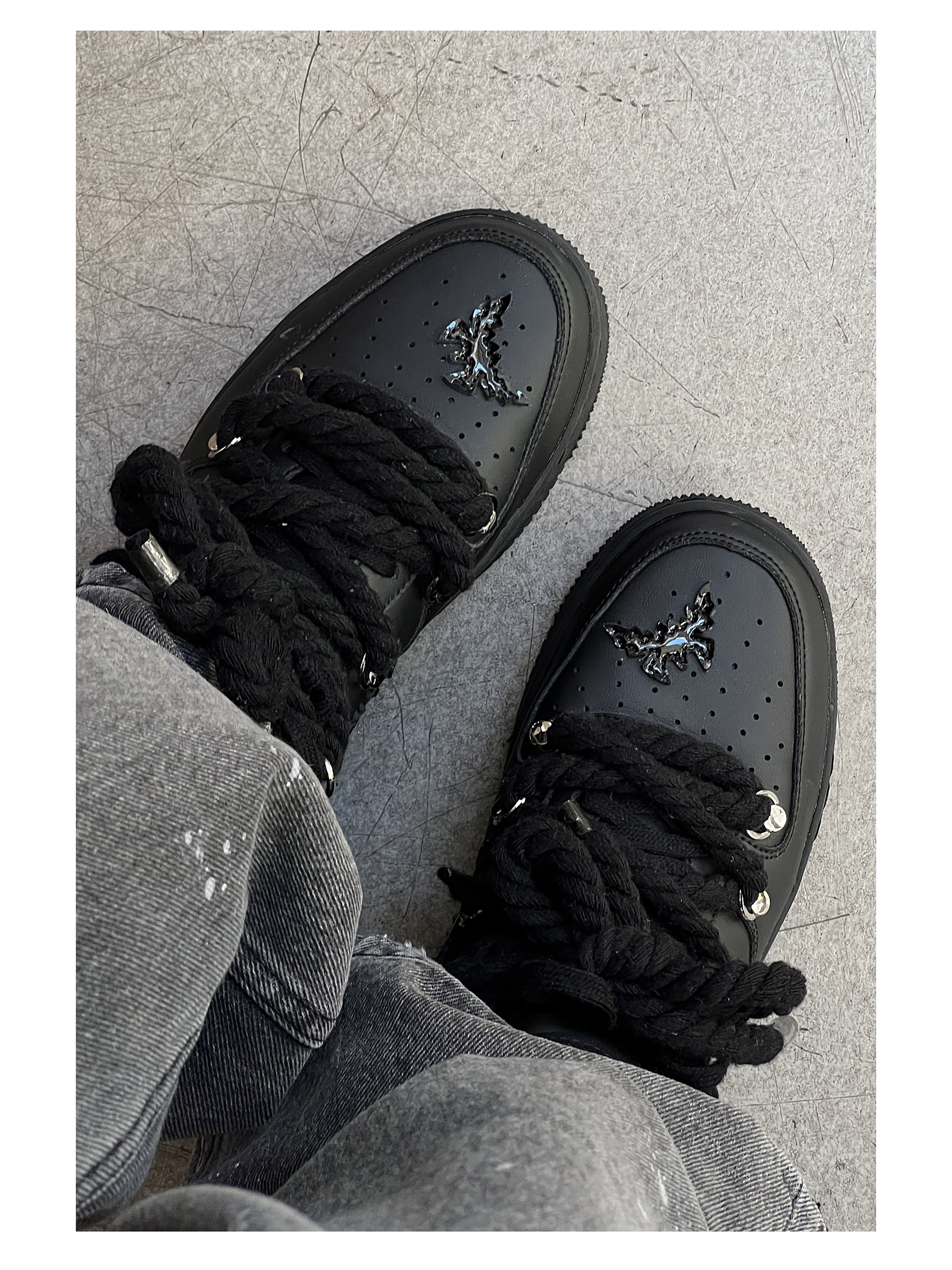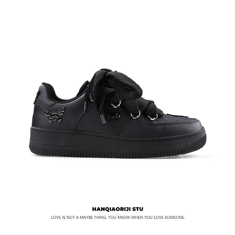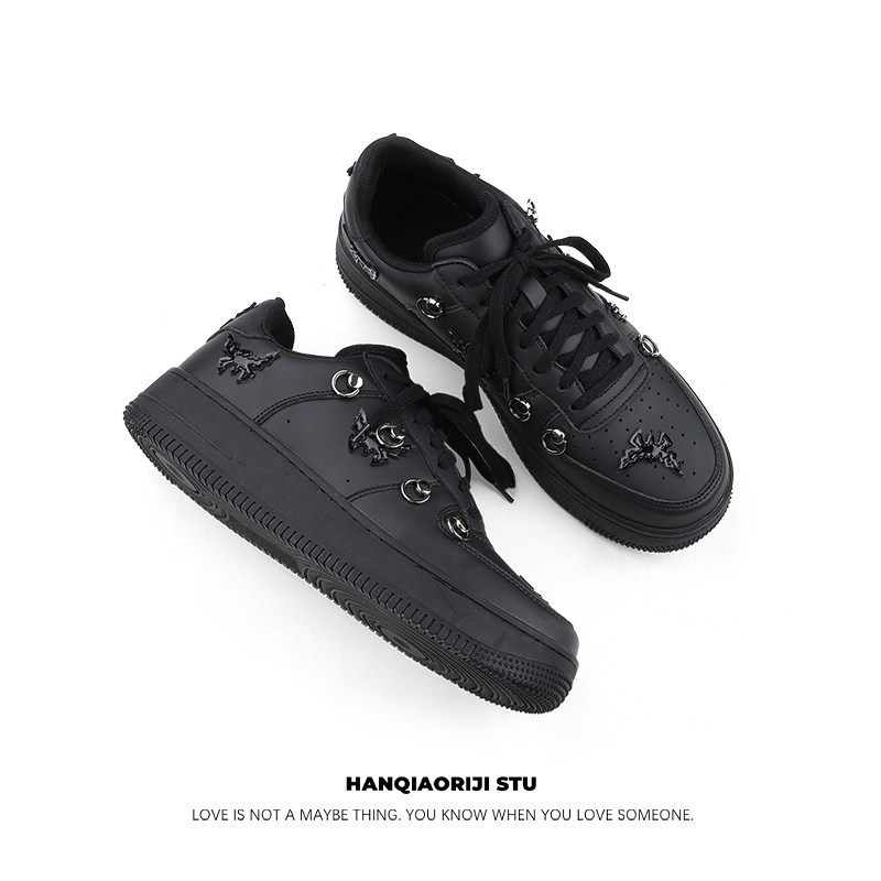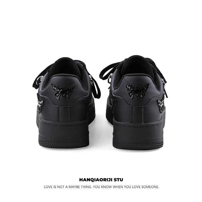 Hanqiao Diary Original Niche ins Unique Butterfly Casual Sneakers Versatile Black Sports Shoes Thick Sole Unisex