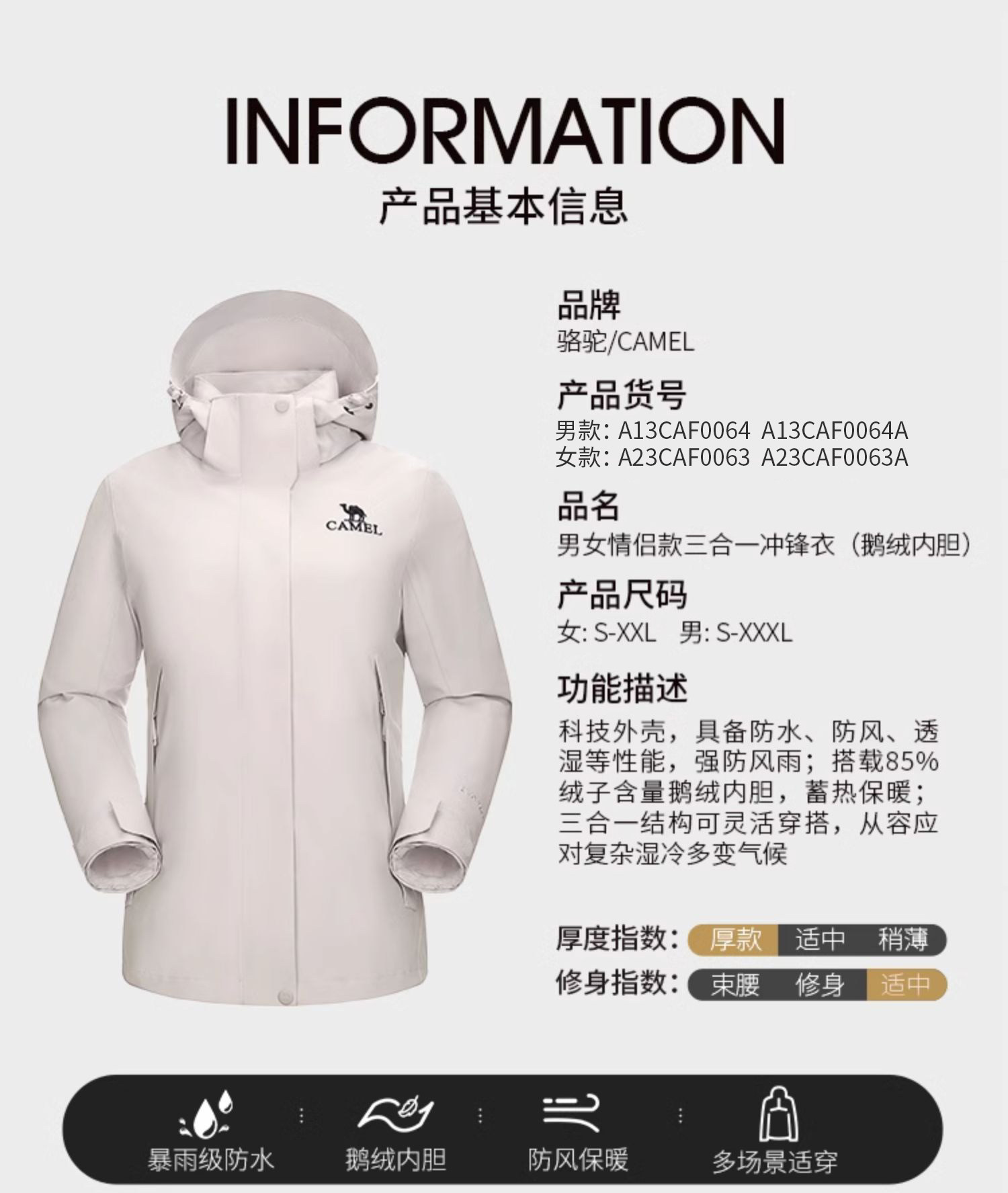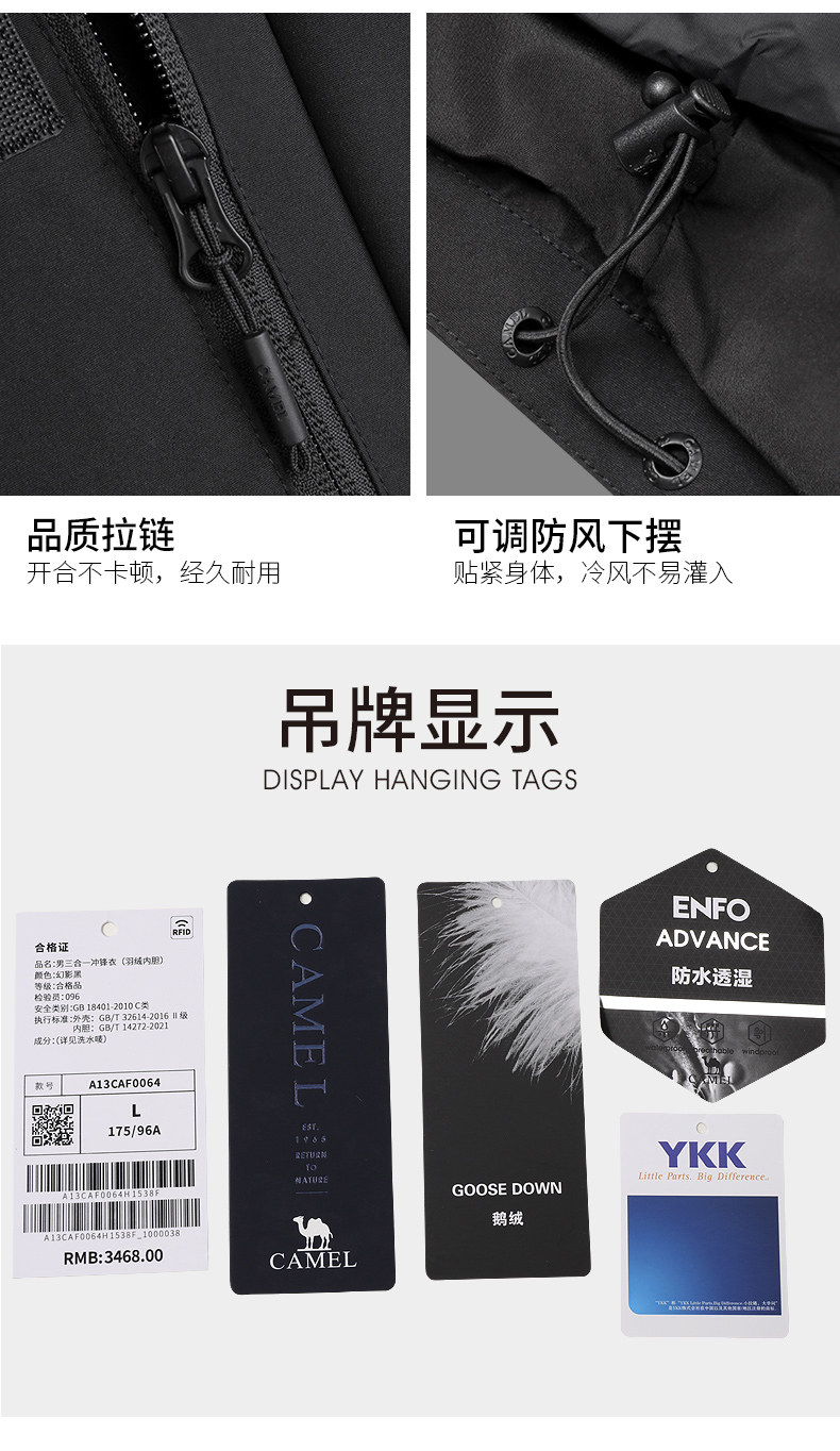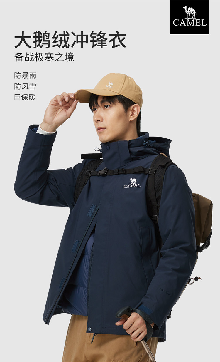 Camel Outdoor Big Goose Jacket for Men and Women, 3-in-1 Winter Extreme Cold Thickened down Jacket, Mountaineering Coat for Winter