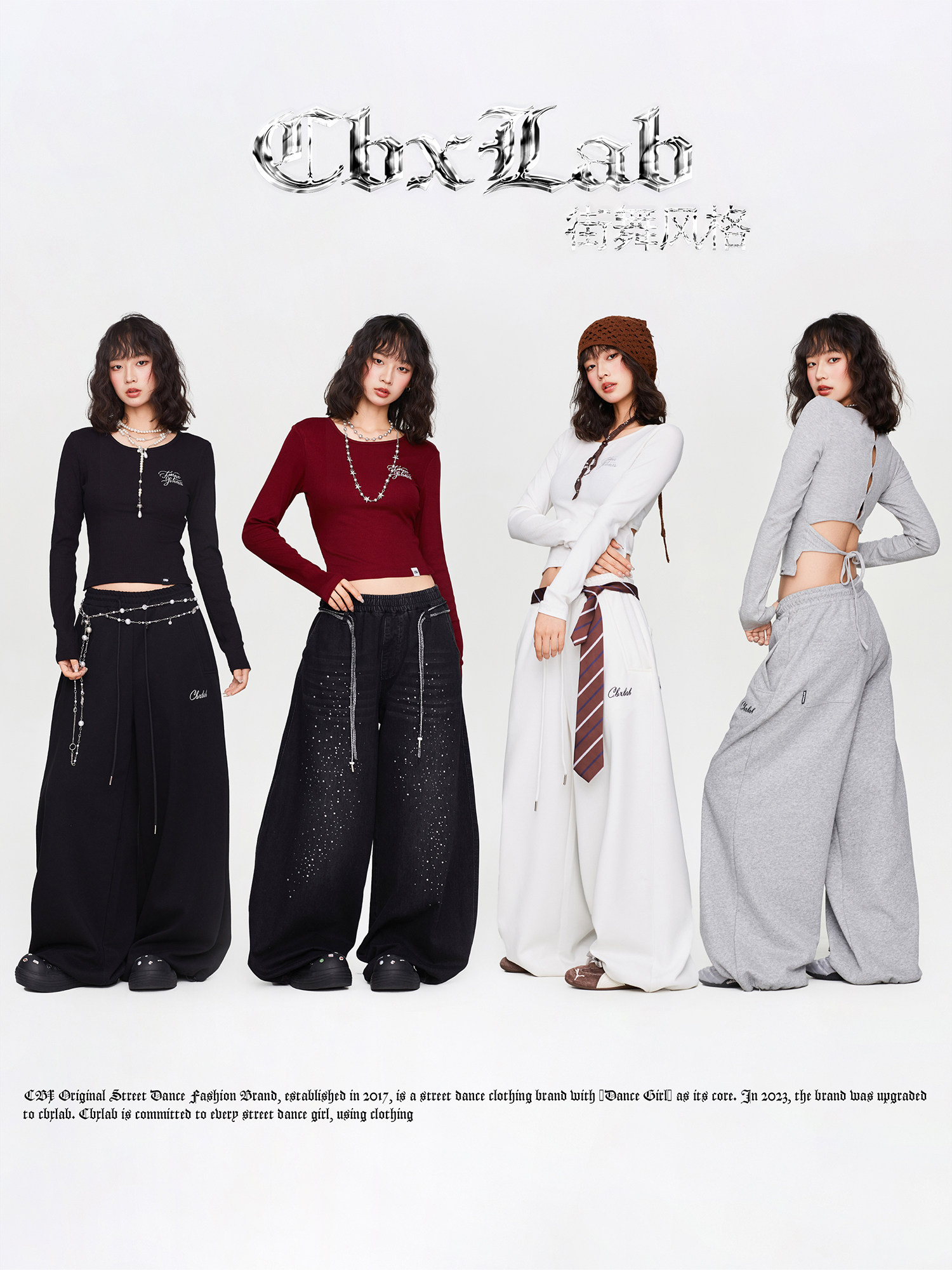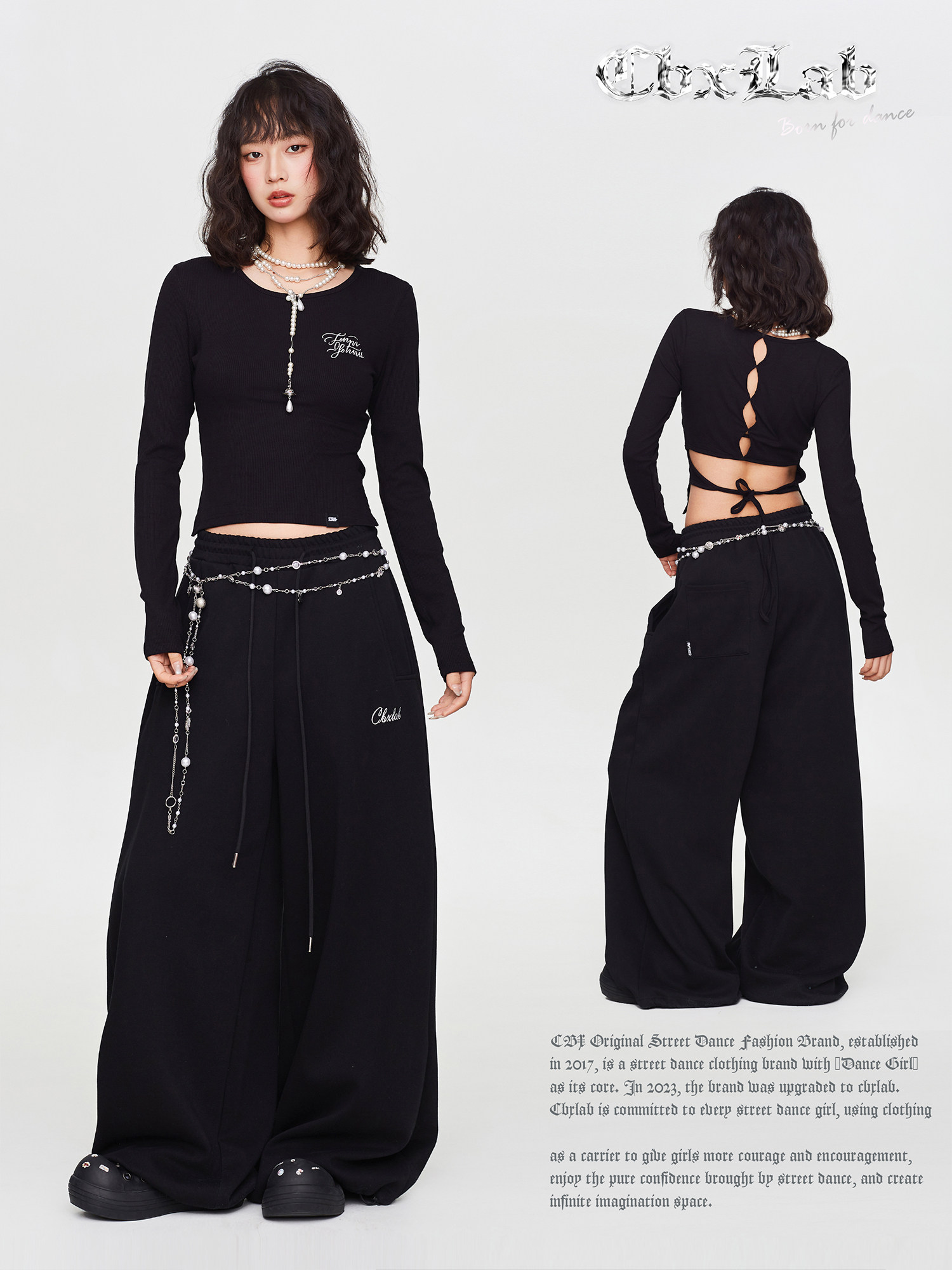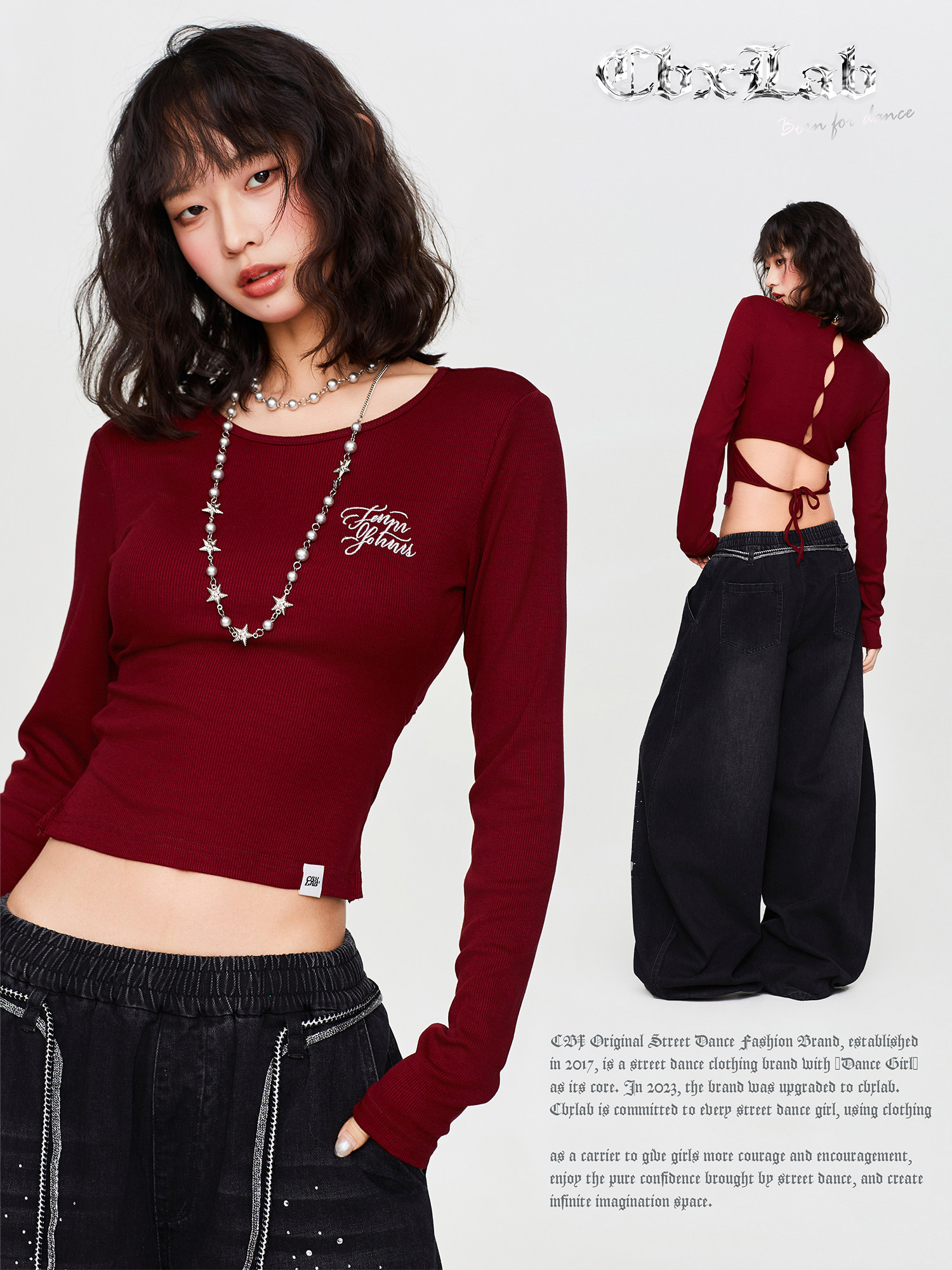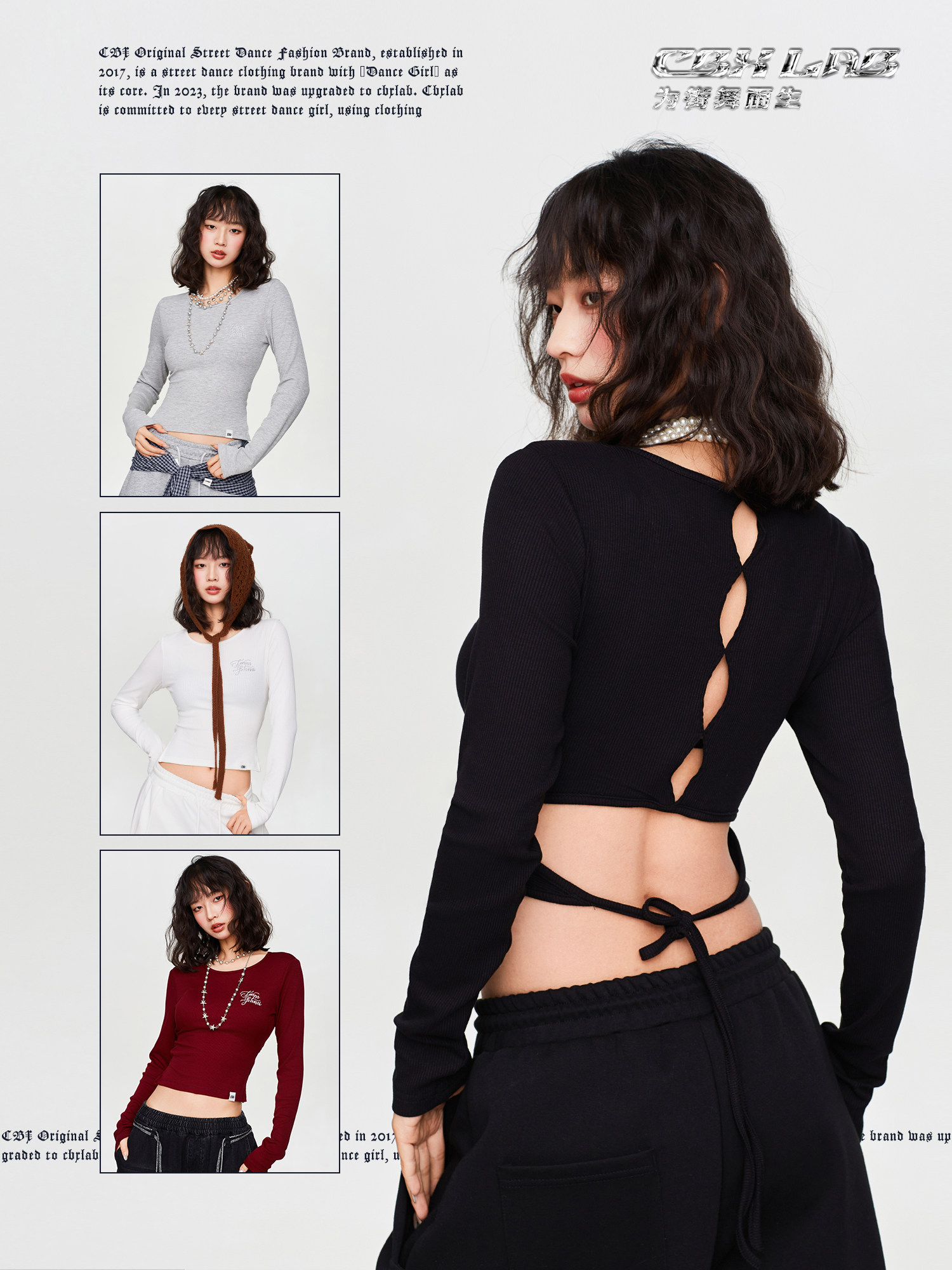 Cbxlab Street Dance Trendy Brand Spring and Summer Backless Lace-Up Short-Sleeve Sexy Soft Skin-Friendly Jazz Slim-Fit Top for Women