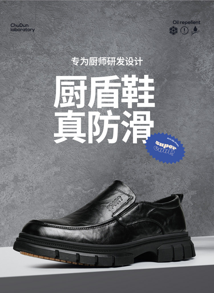 [Cook Shield] Chef Shoes Are Non-Slip, Waterproof, and Oil-Proof, Men's Professional Thick-Soled Kitchen and Catering Work Leather Shoes