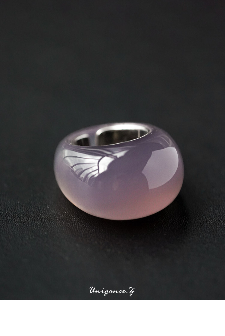 Unig by Guan/Yan Zi Jing/Natural Rare Purple Chalcedony Large Gemstone S925 Silver Ring Niche High-End Gift
