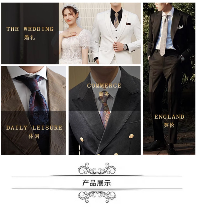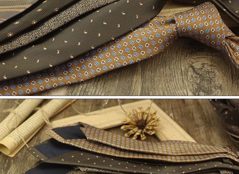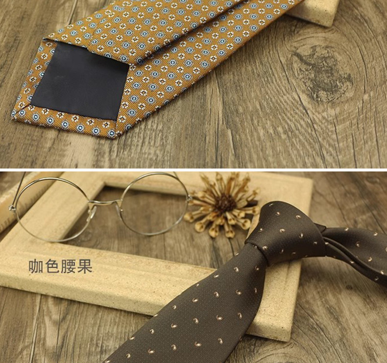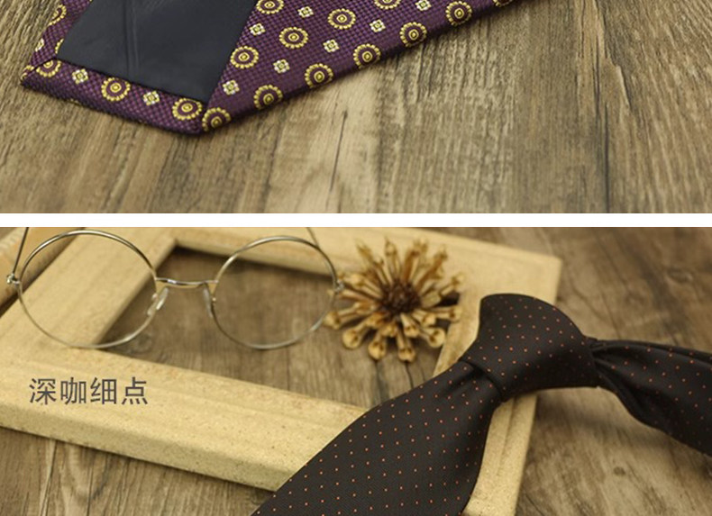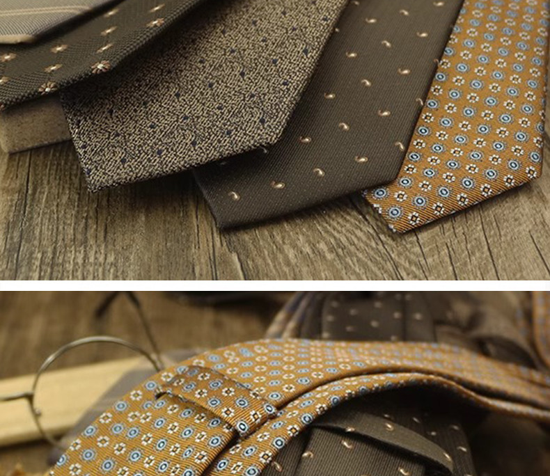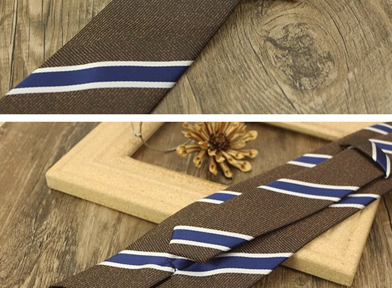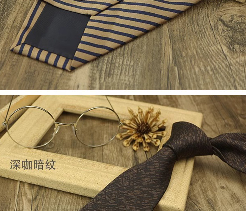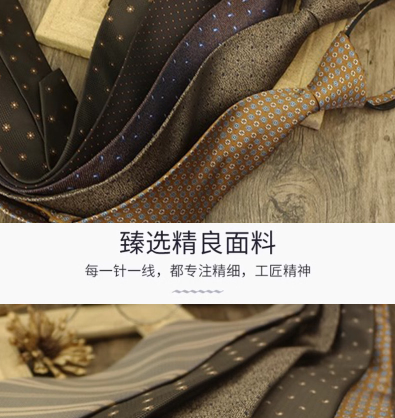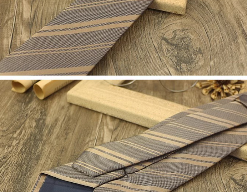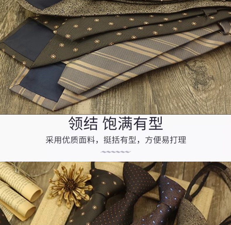 Champagne-Colored Tie for Men, Coffee-Colored Business Tie, No-Knot Zipper Style, Vintage Striped Wedding Groom's Tie, Easy-To-Wear Patterned Tie
