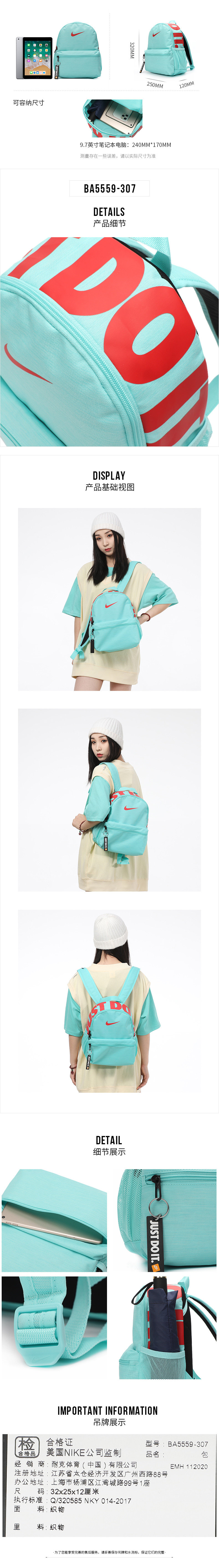 Nike Backpack 2025 New Model Men's and Women's Sports Travel Small Bag Student School Bag Children's Backpack Ba5559